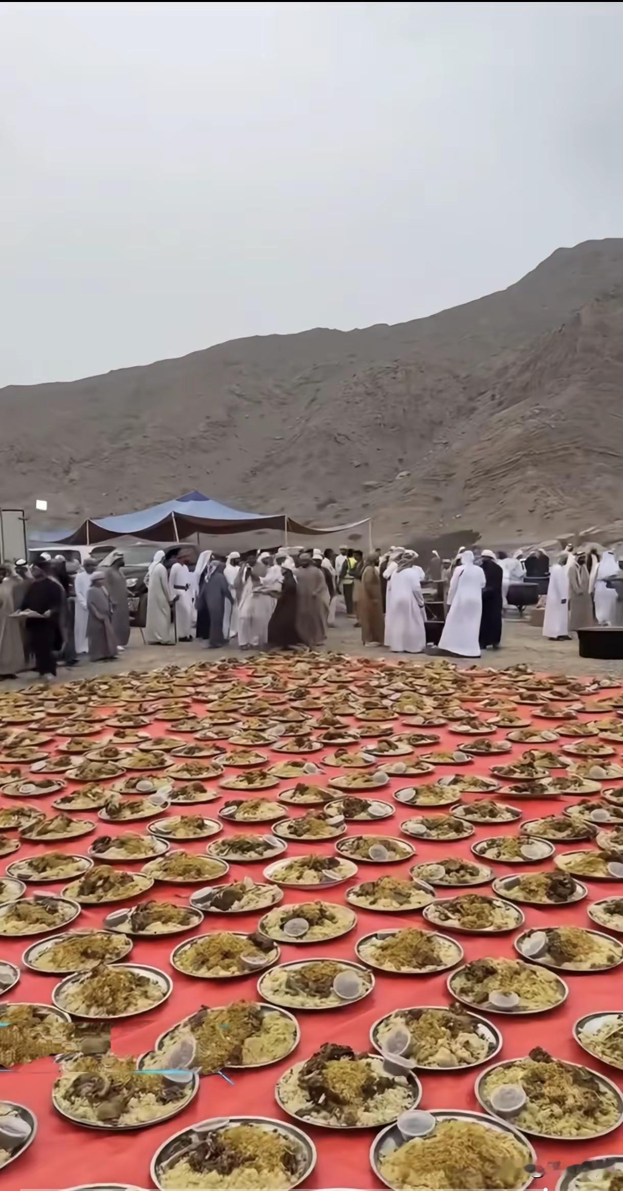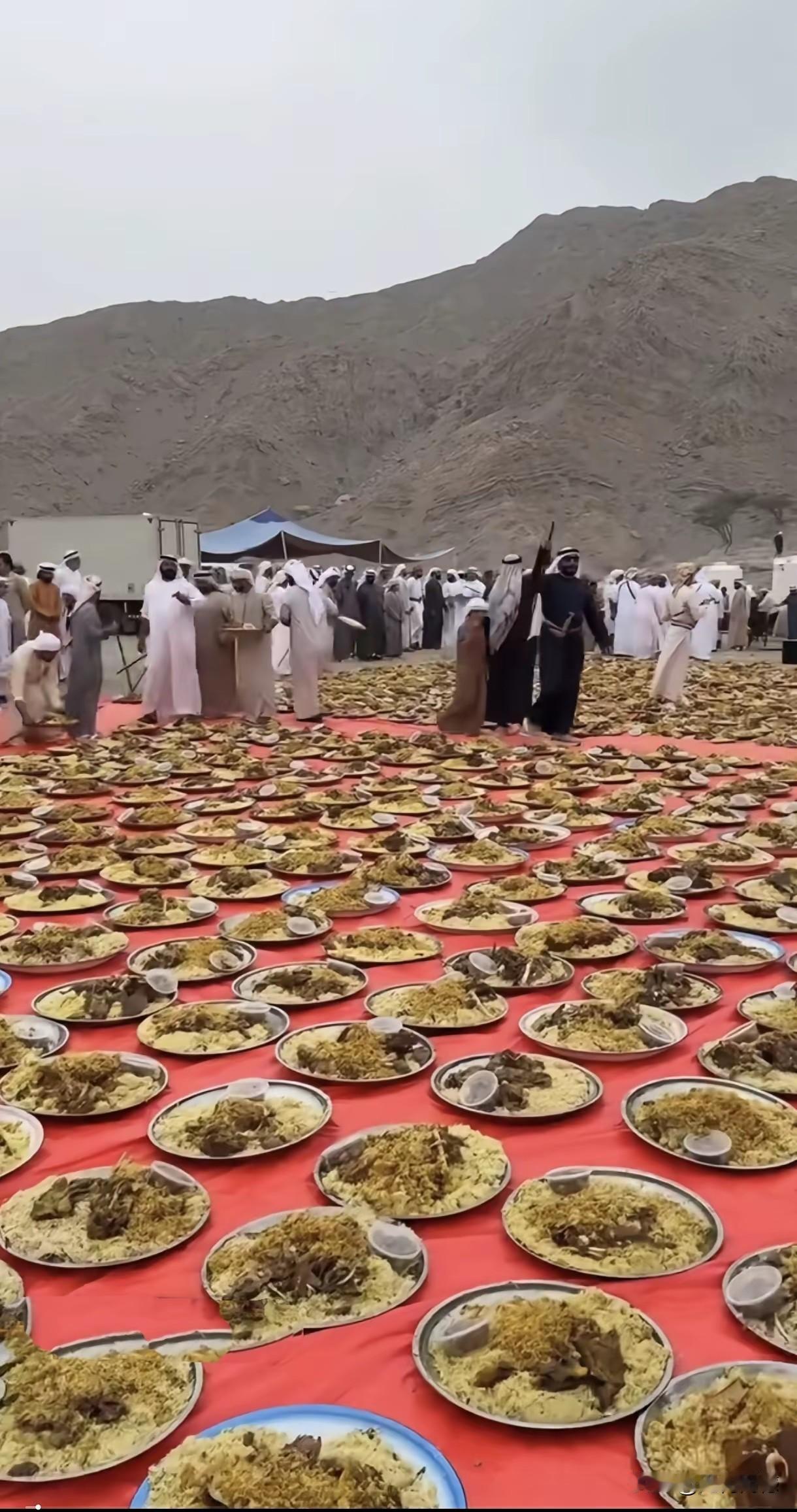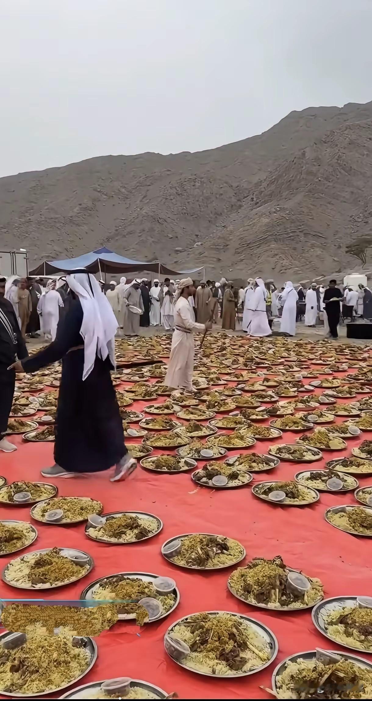这场面看起来也是非常壮阔的,把这么多自助餐放在地上,连坐人的地方都没有,吃饭的时候可怎么吃呢?一个地方有一个地方的习俗,这里的习俗很接地气,直接把饭菜放在地上,这应该是千百年来传承下来的一个习惯,在我们南方有一个地方,也有在地上直接吃饭的习惯!