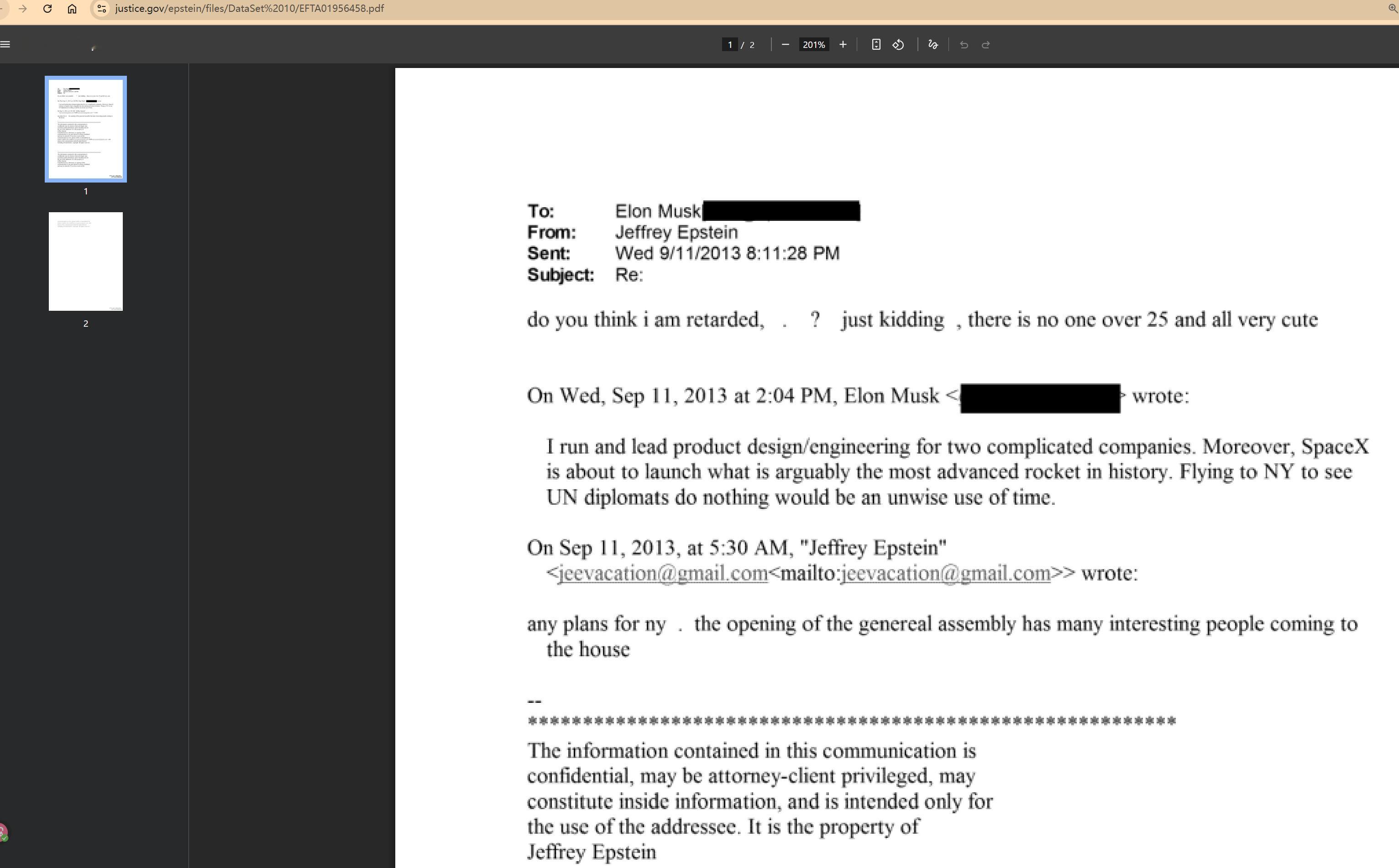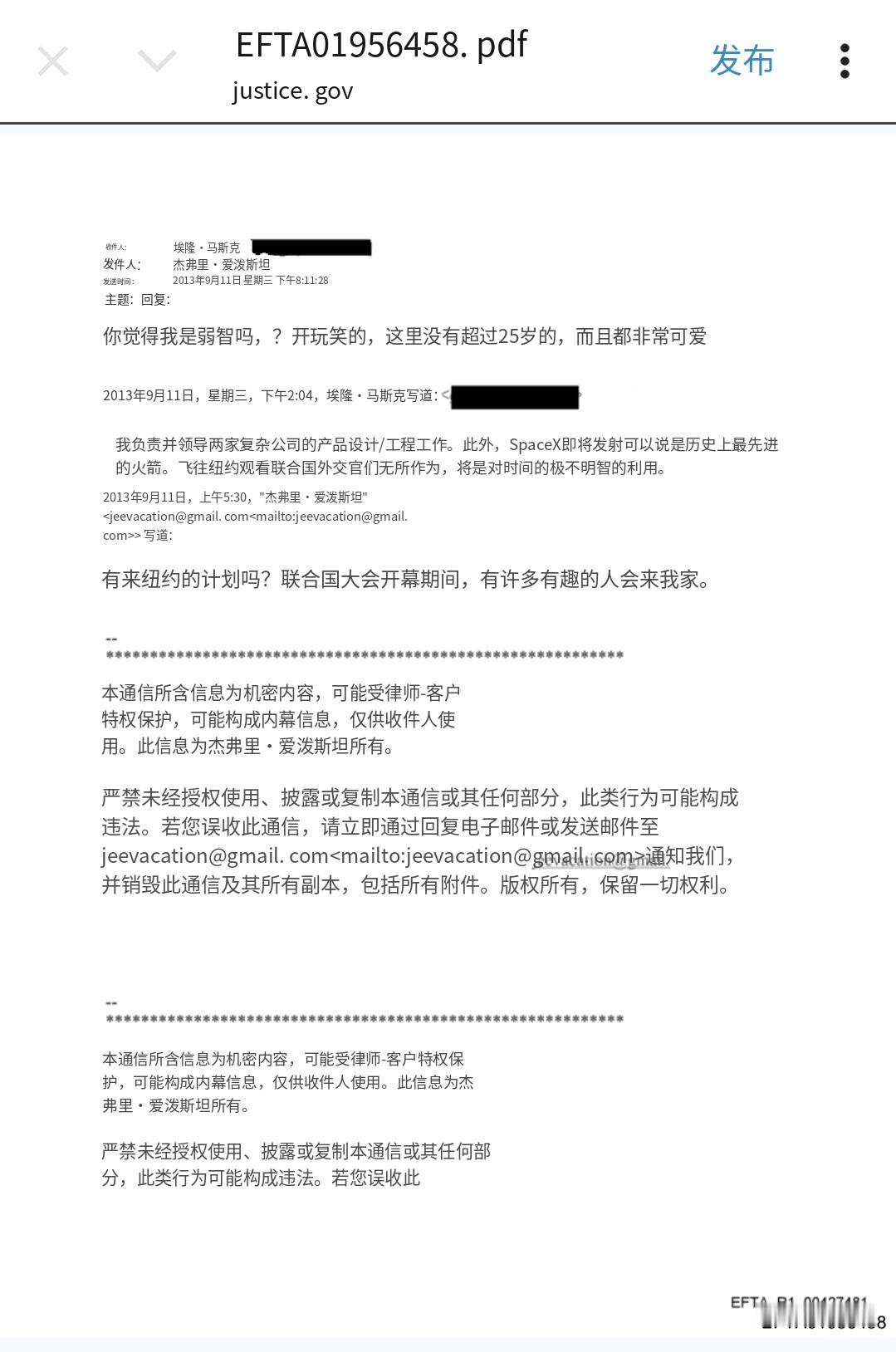 🔻爱泼斯坦给马斯克发邮件称:“有来纽约的计划吗?联合国大会开幕期间,有许多有趣的人会来我家。”🔻马斯克回复:“我负责并领导两家复杂公司的产品设计/工程工作。此外,SpaceX即将发射可以说是历史上最先进的火箭。飞往纽约观看联合国外交官们无所作为,将是对时间的极不明智的利用。”🔻爱泼斯坦回复:“你觉得我是弱智吗?开玩笑,这里没有超过25岁的人,而且都非常可爱。”🔻邮件来自美国司法部网站公布爱泼斯坦档案,文件编号 EFTA01956458.pdf爱泼斯坦在厨房追逐女孩热点现场海外新鲜事