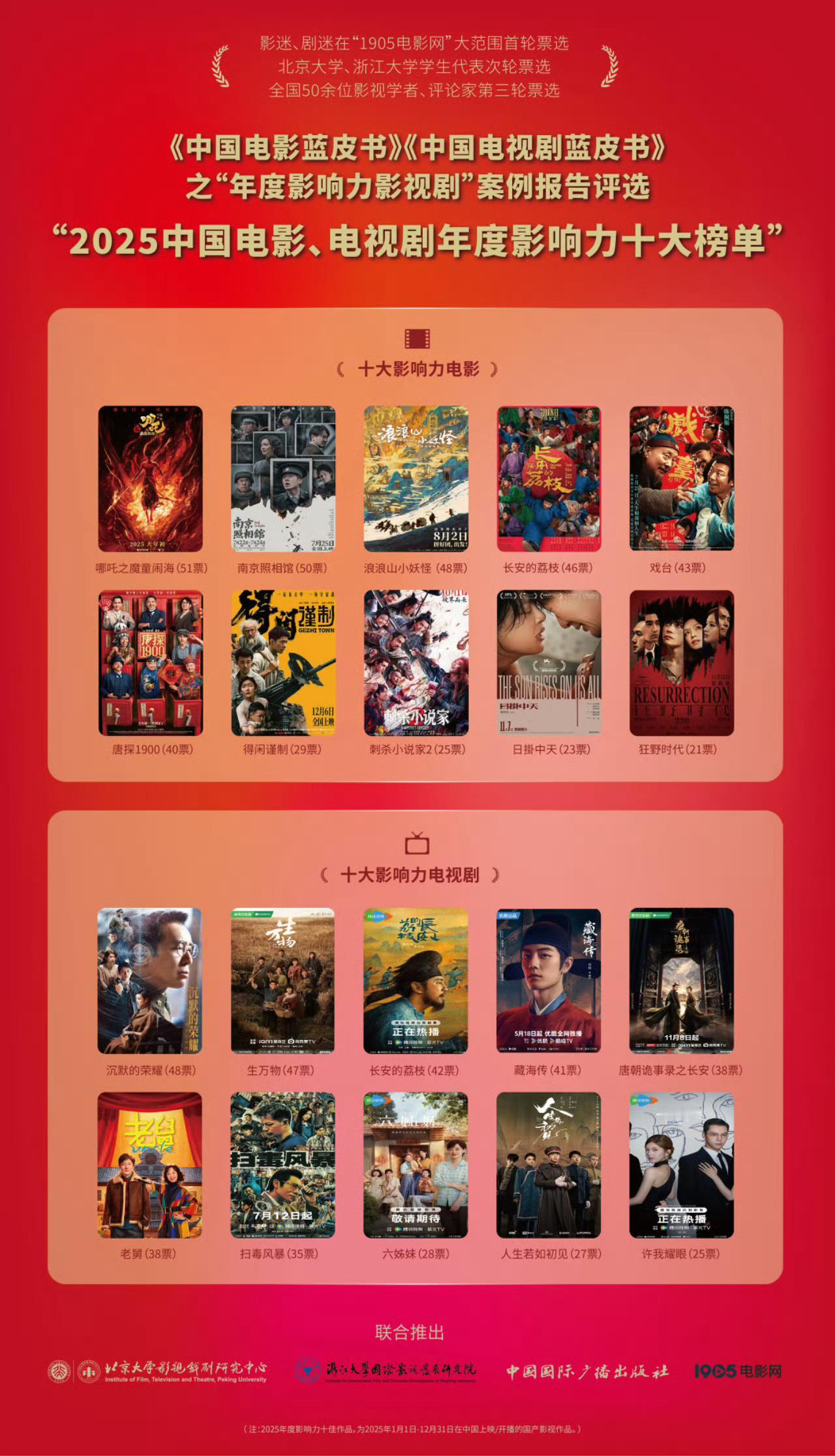 《中国电影蓝皮书》《中国电视剧蓝皮书》2025年十大影响力电影/电视剧影响力榜单