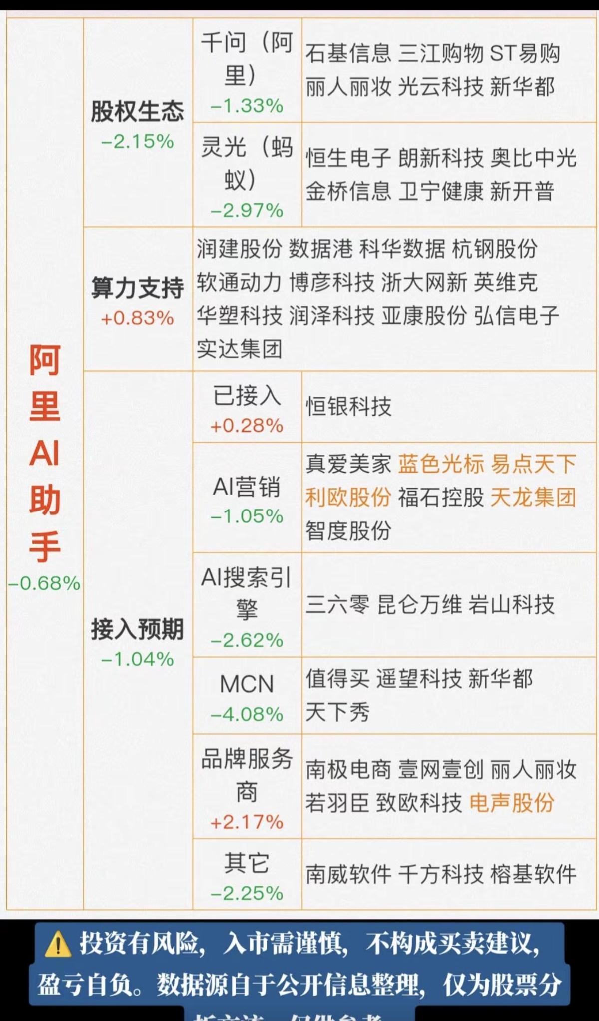 阿里AI助手! 驱动事件:阿里加入春节档红包大战,千问app将在春节期间向用户推出红包福利! 相关阿里概念股: