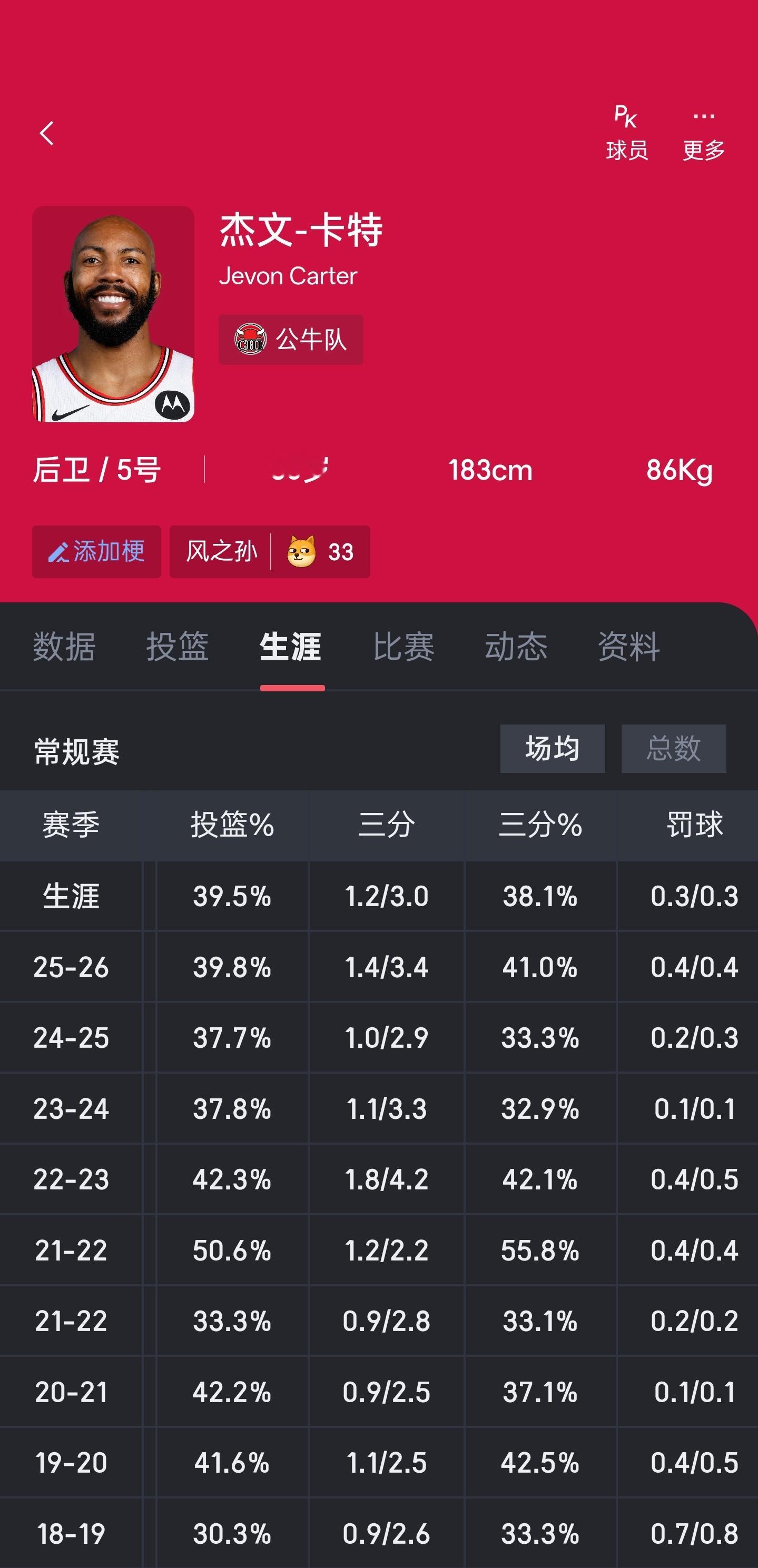 勘误了 上一条删了 以为被裁的是国王那个脆皮鸡卡特 实际公牛的那个卡特还是好用的 今年看了不少公牛的比赛 他在一些能上场的衔接段的三分还是有不小的杀伤