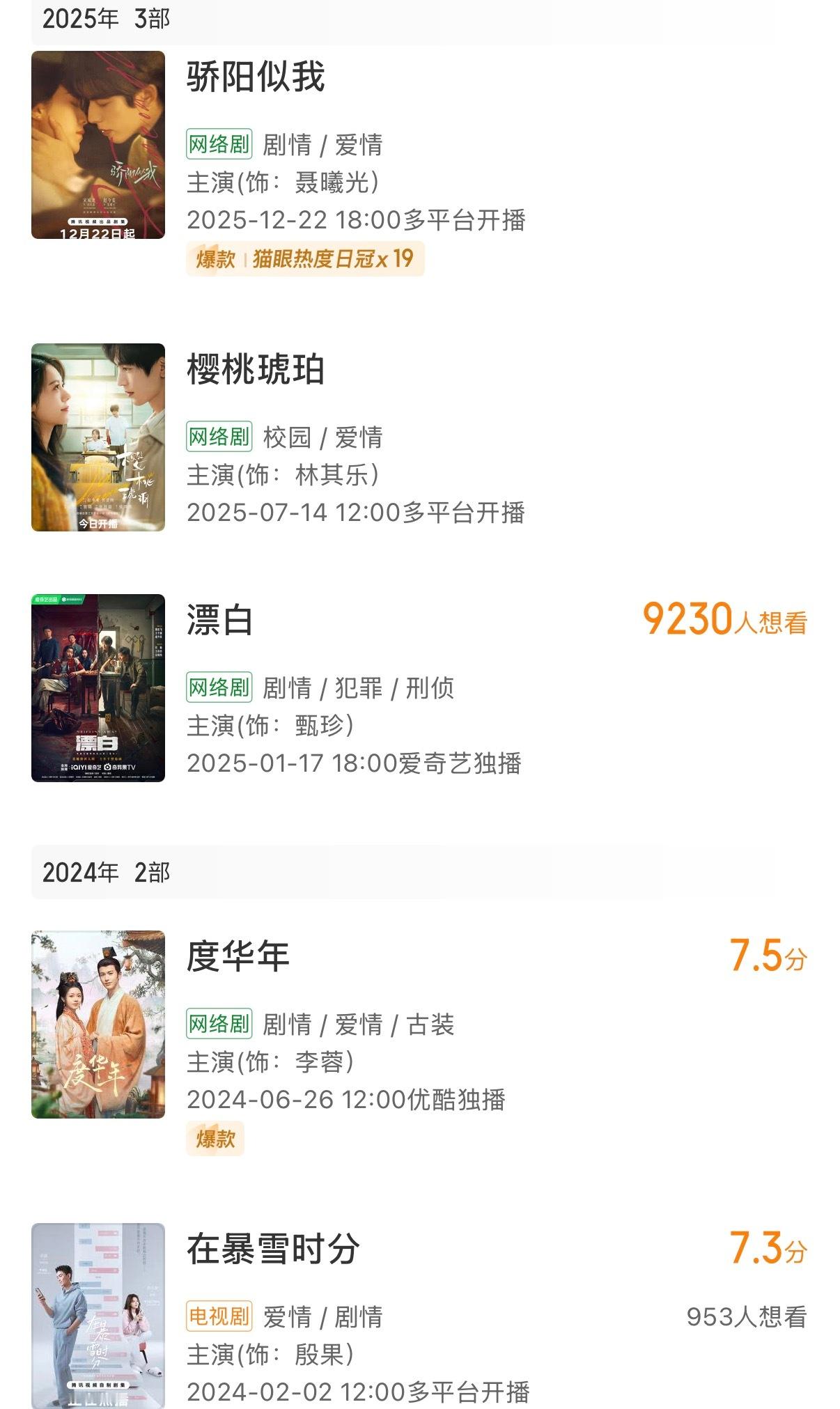 麦麦都是大IP改编电视剧,播出效果不好确实要反思一下。我发现00花在剧方面,实绩很差,相反电影还凑合。