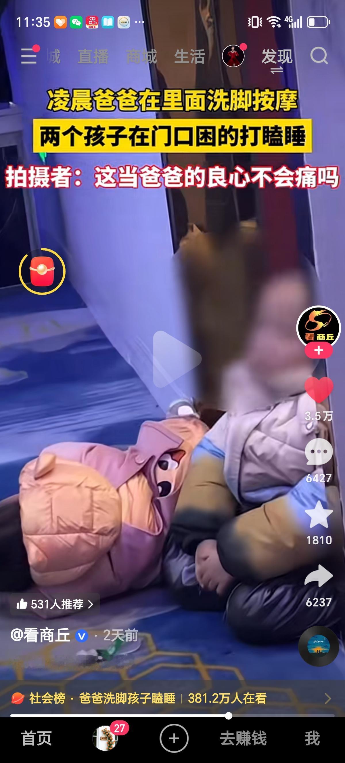 爸爸在里面享受洗脚按摩服务,两个孩子在门口望风。也不知道做的啥按摩不方便让孩子看,非得扔门口。一个坐着靠门框睡着了,另一个干脆躺地上睡着了。还都挺乖巧,看着就是还在吃奶的年纪,竟然没有到处乱跑。 还有网友特意问是不是大人在上班,才把娃扔门口了,结果马上就有网友证实,就是孩子爸爸去洗脚把娃扔门口了。 好奇孩子的妈妈哪里去了,是不在家吗。就这么大晚上的,也不让孩子回家睡觉,还得陪着爸爸出来望风。