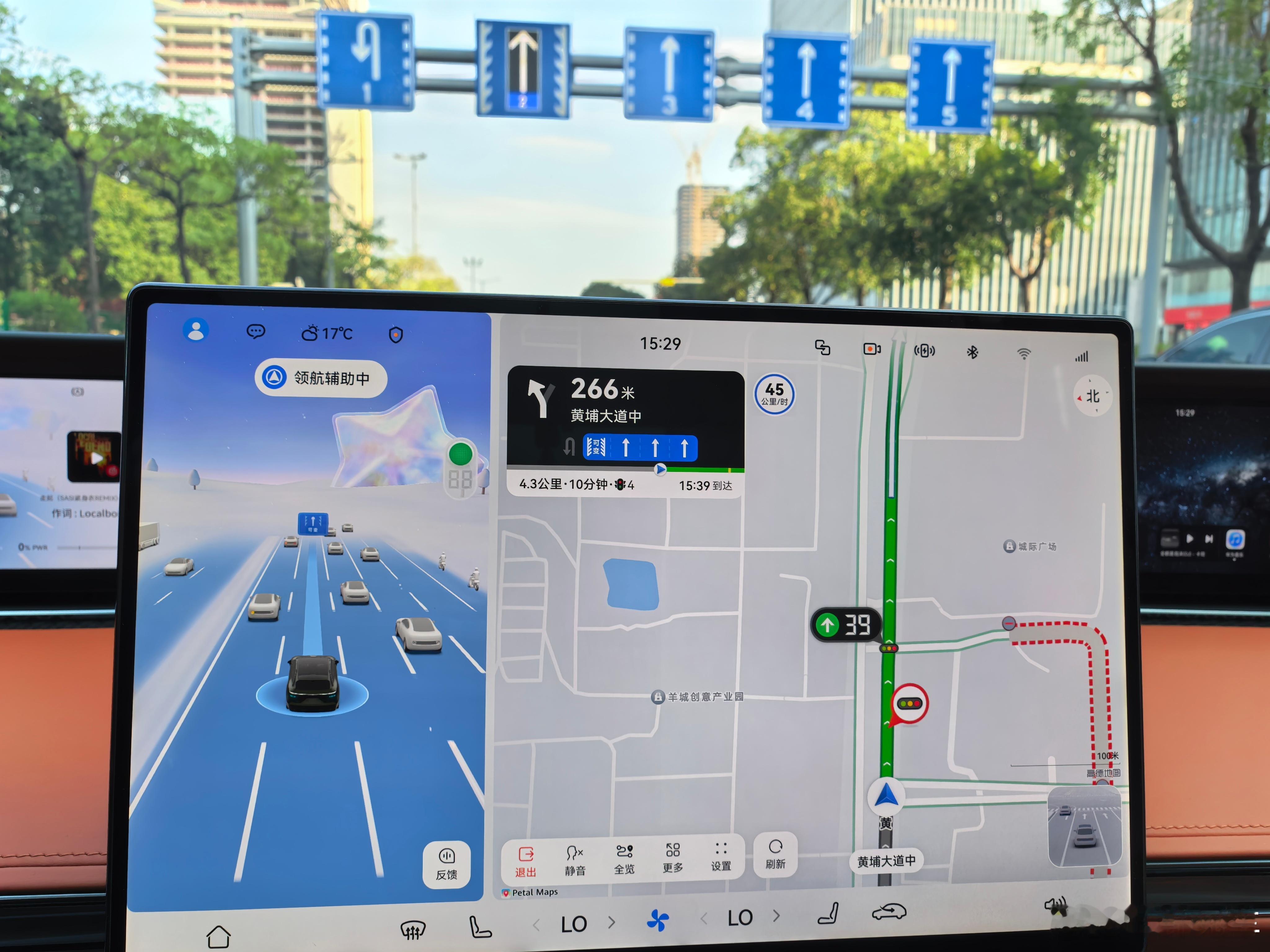 ADS 4.1已经可以准确识别可变车道,比如这里可变车道显示直行的时候,我们直行就不会再避开可变车道,可以正常通行。顺便一提,这个新主题真的很不错,好看。