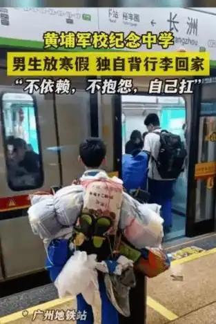 广州中学生地铁背影刷屏!瘦小身板扛满行李,网友直呼:这才是最好的成长课。 (个人观点仅供参考,无任何不良引导) 近日广州地铁的站台之上,一个穿着校服的男生背影,被路人随手拍下后迅速走红网络。男孩看着身形单薄,却一个人打理着所有行李,手推拉杆箱,背上压着鼓鼓的双肩包,胳膊上还挎着满满当当的手提袋,沉甸甸的包裹坠得他肩头微沉,他却只是安静站在屏蔽门前等车,全程没有丝毫慌乱,也未向旁人寻求一丝帮助,小小身影里藏着远超年龄的沉稳与独立。 这张照片在网上掀起热议,网友们纷纷留言感慨,有人说现在不少孩子被捧在手心,连书包都要家长代拿,这孩子的懂事太难得。有人直言比起考卷上的数字,这种自己扛事的能力,才是孩子这辈子最硬的底牌。更多家长看到后开始反思,总想着给孩子遮风挡雨,却忘了教会他们自己撑伞,真正的教育,从来不是养出温室里的花朵,而是培养能独自面对风雨的小树。 老话讲“三岁看大,七岁看老”,孩子的品性与能力,往往藏在日常的小事里。这个广州男孩的一举一动,正是独立与担当的最好体现。他或许是独自返校,或许是帮家里办事,无论何种缘由,他都用稚嫩的肩膀,扛起了属于自己的责任。这份不娇不馁的模样,比任何满分试卷都更让人动容。 教育的本质,从来不是只追求分数的高低,而是培养孩子健全的人格。分数能决定一时的升学,可独立、坚韧、有担当的品格,才能支撑孩子走好一生的路。父母的庇护终有尽头,孩子总要学会自己面对生活的重量,自己扛的能力,是孩子成长路上最珍贵的礼物,也是他们未来立足社会的底气。 这个刷屏的背影,是成长最美的模样。愿每个孩子都能练就独当一面的能力,不依赖不娇弱,在人生的路上,既能坦然接住生活的甜,也能勇敢扛起前行的苦,活成自己最坚实的依靠。 图片素材来自网络,无任何不良引导。