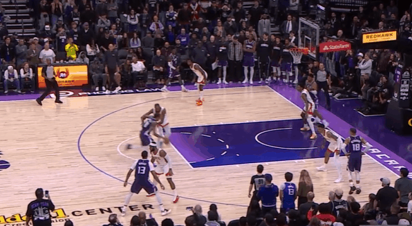 P8 最后9.9秒国王绝杀/绝平关键进攻回合:德罗赞单挑杜兰特持球突破直杀篮下,吸引伊森回收协防后篮下极限跳传找到弱侧外线空位的施罗德。施罗德底角接球迎着伊森的飞扑,三分手起刀落完成准绝杀。