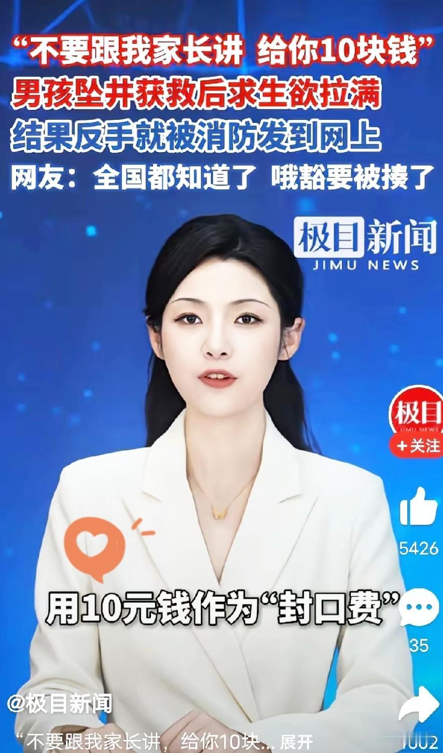 四川资阳有个小男孩掉进废弃深井, 被消防员叔叔救上来后,没先哭, 反倒掏出兜里仅有的10块钱,带着哭腔求着:“别跟我家长讲,这10块钱给你。” 看这孩子,小脸还沾着泥,嗓子哑得快说不出话,手里攥着那10块钱,皱巴巴的,估计是攒了好几天的零花钱。他哪是在“买通”消防员啊,分明是怕极了家里的责骂。说不定平时稍微犯点错,迎来的就是一顿狠批,不然咋会宁愿把宝贝的零花钱拱手让人,也不想让家长知道? 消防员肯定没收这钱,还蹲下来帮他擦脸,柔声说:“叔叔不说,你也不用给钱。以后可不能再往危险的地方跑了,多吓人啊。”孩子这才“哇”地哭出来,把憋了半天的害怕全倒了出来。 这事看着揪心。小孩犯了错,第一反应不是找家长寻求安慰,而是想着怎么瞒过去,甚至用自己最宝贝的东西去换“保密”,这背后藏着啥?无非是怕。怕家长的脸色,怕那句“跟你说过多少遍”,怕可能扬起的巴掌。 咱们总说“严是爱”,可严过头了,孩子就学会了藏。藏起自己的错误,藏起真实的想法,慢慢就不敢跟家里说实话。你想啊,连掉井里这么大的事都敢瞒,那平时摔一跤、丢个东西,还不得吓得夜里睡不着? 消防员那句“叔叔不说”,听着简单,其实是给了孩子一个台阶。可这台阶,本该是家里给的啊。要是平时犯错了,家长能先问问“摔疼了没”,再慢慢说“下次注意”,孩子哪会吓得把10块钱当“救命钱”? 钱是小事,可这心思太让人心疼。孩子眼里,10块钱就是他能拿出的全部“筹码”,他以为能用这个换平安,却不知道,真正的平安,是家里那句“没事就好,下次小心”。 各位读者你们怎么看?欢迎在评论区讨论。