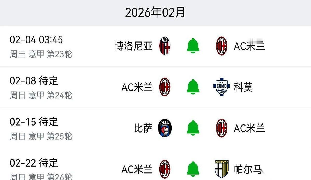 说到底,还是得给“大哥”腾地方。 我们米兰的比赛,就这么给挪了。 好家伙,一看日子,大年二十九,大年初二。 这是生怕我们过年太清闲是吧? 就不知道这比赛时间,是阳间还是阴间。 如果是黄金时间,我跟你讲,那场面…… 全国各地,那些潜水了不知道多少年,孩子都能打酱油的二三十年老米兰,估计都得从沙发上弹起来。一边被老婆骂,一边偷偷摸摸看球。 过年看米兰,那感觉…… 啧,一下子就回到二十年前了。