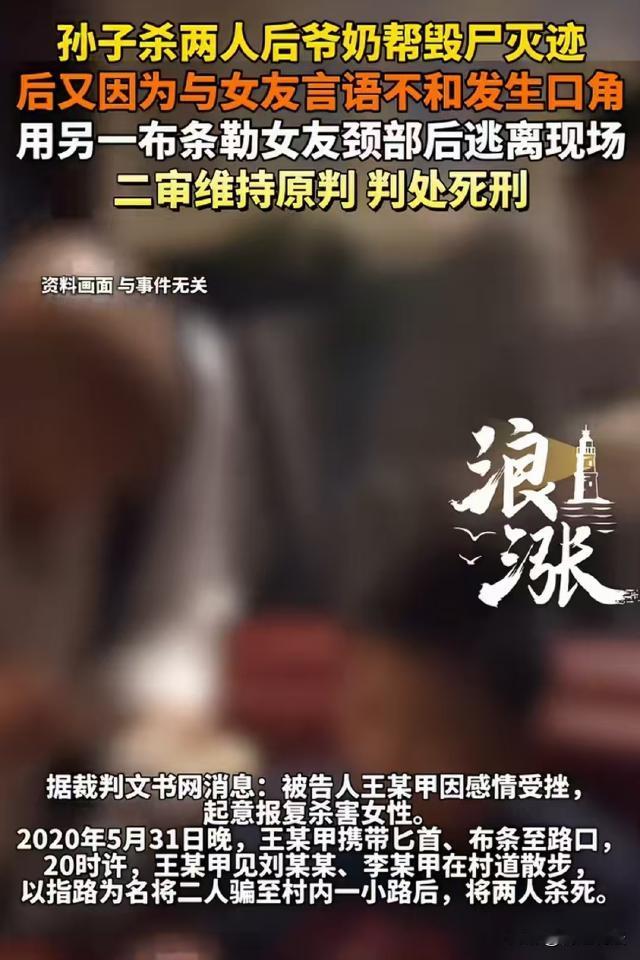 丧心病狂!四川宜宾,男子以指路为由,将两个女子骗到一条没人的路上害了,埋在桑树田里,男子的爷爷奶奶知道后,将两名女子挪到猪圈里,淋上汽油和菜籽油焚烧,没烧掉的骨头扔到鱼塘和河里。几天后,男子约17岁女朋友见面,又把女朋友害了…… 据浪涨新闻等报道,00后男子王某和女子凡某是男女朋友关系,答案时凡某只有17岁,心性还不稳定,和王某之间经常发生矛盾。 因为两人经常吵架,凡某觉得王某不够爱自己,和王某闹分手,王某心里非常生气,将对凡某的怨恨迁怒到所有女性身上,心里产生了报复女性的想法。 2020年5月31日晚,王某带着提前准备好的匕首和布条出门,走到村外路口时,看到两个年轻女孩刘某某和李某某在村道上散步。 王某走过去,装作对附近不熟的样子,问她们知不知道去某某地怎么走。 两个女孩非常热心,告诉了王某怎么走,可王某又装作不知道的样子,非让她们带路。 两个女孩毫无防备,带着王某走进村里,走到一条小路后,王某突然发难,眨眼间刘某某和李某某就倒下了。 王某不慌不忙,将二人拖到村里的一个桑树田里埋了。 第二天,王某想了想,两人埋在桑树田里不保险,万一被人发现,自己就有被发现的可能。 王某的奶奶非常宠爱他,于是王某给奶奶打了电话,告诉她自己昨天干下的事,奶奶听说后吓得不知道如何是好,又将这件事告诉了老伴。 为了孙子,两人趁着夜黑风高,将刘某某和李某某挖了出来,放在自己家猪圈里,淋上汽油和菜油烧了,没烧完的骨头,两人又捡起来扔到门口的鱼塘和附近的河里。 可两位老人不知道,王某的内心已经完全扭曲了,这件事也不会就这么轻易就完了。 做下这件事后,王某仍在不停和凡某联系,6月10日,王某成功约了凡某见面,但是王某没能挽回凡某的心,两人还吵了一架。 回家后,王某已经在心里判了凡某死刑。 第二天,王某开了一间房,再次将凡某约了过来,他想着,最后再给凡某一次机会,如果她非要离开,自己得不到的,别人也休想得到! 可结果让王某失望了,两人刚见面又发生了争吵,王某用提前准备好的布条,将凡某的手在身后绑了起来。 凡某还没意识到危险性,以为王某不敢真的拿她怎么样,可下一秒,王某就用另一个布条勒住了凡某的脖子,这个17岁的女孩就这样走了。 案发后,王某因涉嫌故意杀人罪被检方提起公诉。 王某因为自己感情不顺利,产生报复女性的念头,先是以指路为由将刘某某和李某某骗至偏僻处害了,之后又因为与凡某的感情纠纷将凡某害了。 根据《刑法》第二百三十二条规定,故意杀 人的,构成故意杀 人罪。 王某在短时间内导致三名女性离世,已经构成了故意杀人罪。并且,王某犯罪手段残忍,情节极其恶劣,社会危害性极大。 依据刑法规定,对于罪行极其严重的犯罪分子,可以判处死刑,王某的行为符合判处死刑的条件。 王某第一次害李某某和刘某某时,爷爷奶奶为了帮助王某逃避法律制裁,帮忙毁尸灭迹,二人的是否构成了共同犯罪? 共同犯罪,是指二人以上共同故意犯罪。 共同犯罪需要满足两个条件,一是各犯罪人必须具有共同犯罪的故意,也就是说,他们既明知道自己犯罪,也明知道与他人共同犯罪,并希望或放任结果发生;二是各犯罪人的行为相互配合,形成有机整体,共同导致危害结果出现。 王某实施犯罪的时候,他的爷爷奶奶并不知道,王某是事后告知,所以,爷爷奶奶不构成共同犯罪,但是他们这种行为构成帮助毁灭、伪造证据罪。 《刑法》第三百零七条第二款规定,帮助当事人毁灭、伪造证据,情节严重的,构成帮助毁灭、伪造证据罪。 王某的爷爷奶奶的行为严重破坏了案件的证据,干扰了司法机关对案件的侦查,属于帮助王某毁灭证据,且情节严重的情形,因此构成帮助毁灭证据罪。 根据法律规定,犯帮助毁灭证据罪的,处三年以下有期徒刑或者拘役。 两位老人疼爱孙子可以理解,但法律面前人人平等,他们的这种行为严重破坏了司法秩序,必然会受到法律的制裁。 最终,一审判王某犯故意杀 人罪,判处其死刑,剥夺政治权利终身。 一审判决后王某不服,提起上诉,二审维持原判。