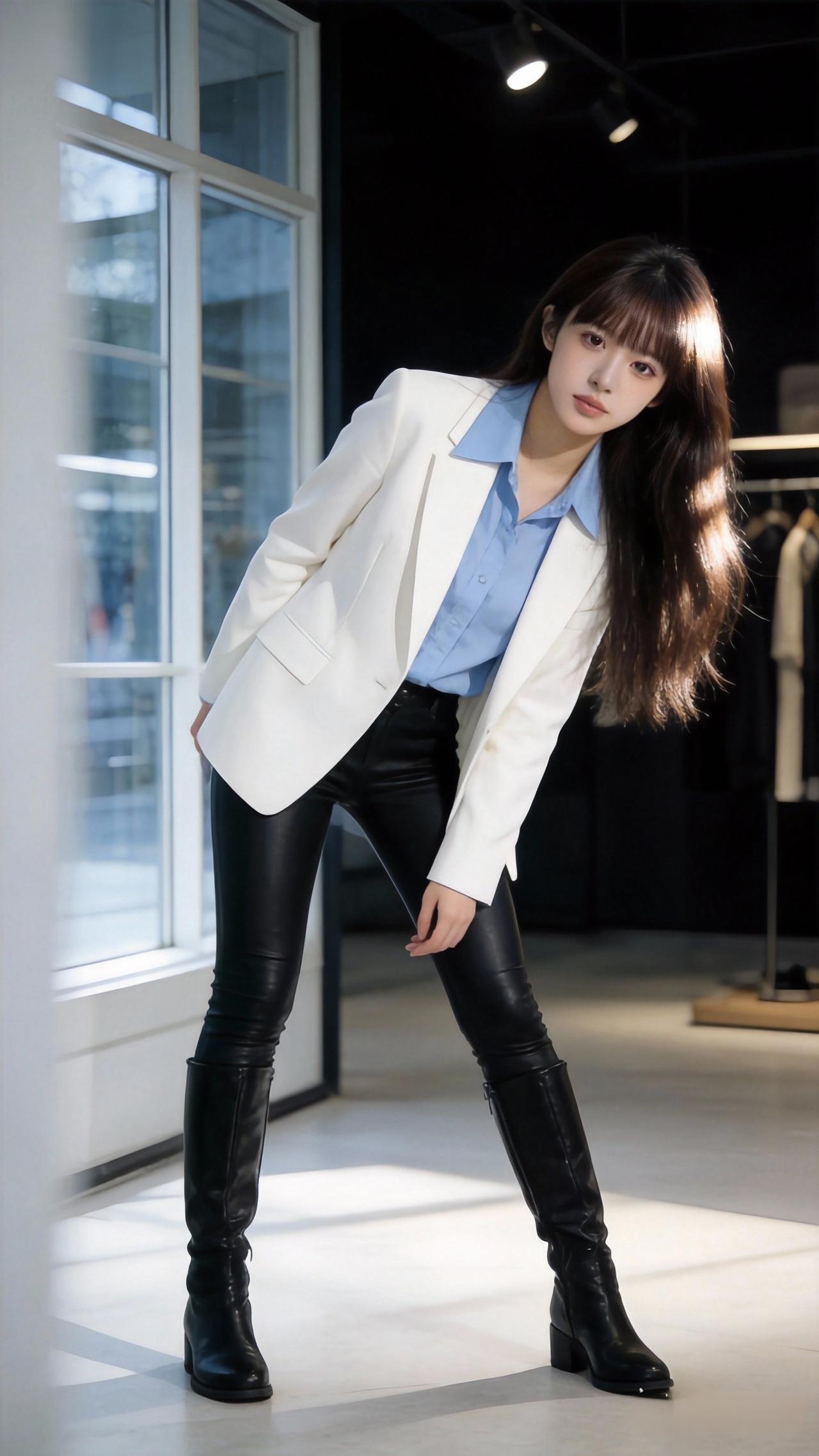白色西装外套+黑色皮裤,气质满分!👠💃