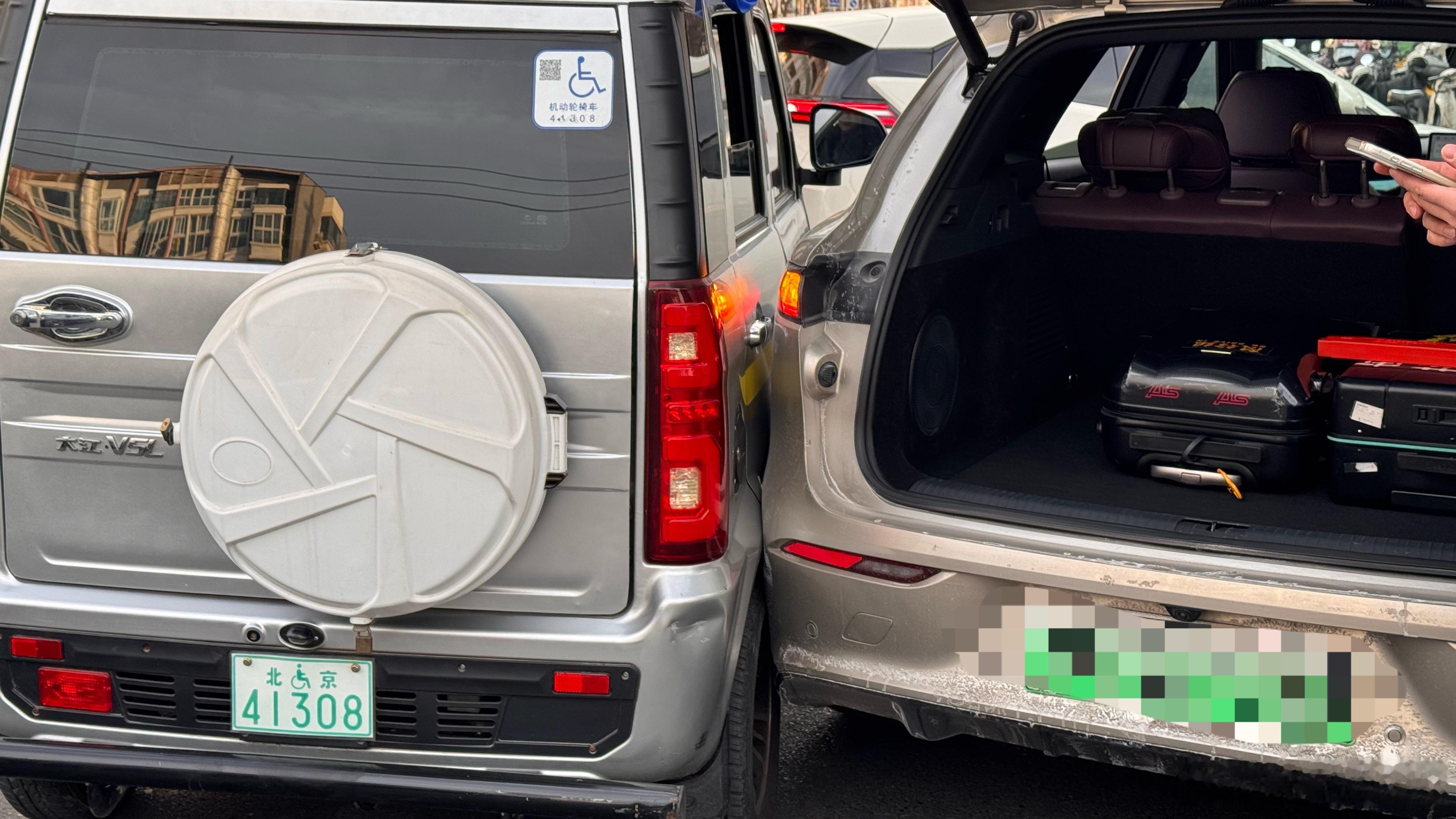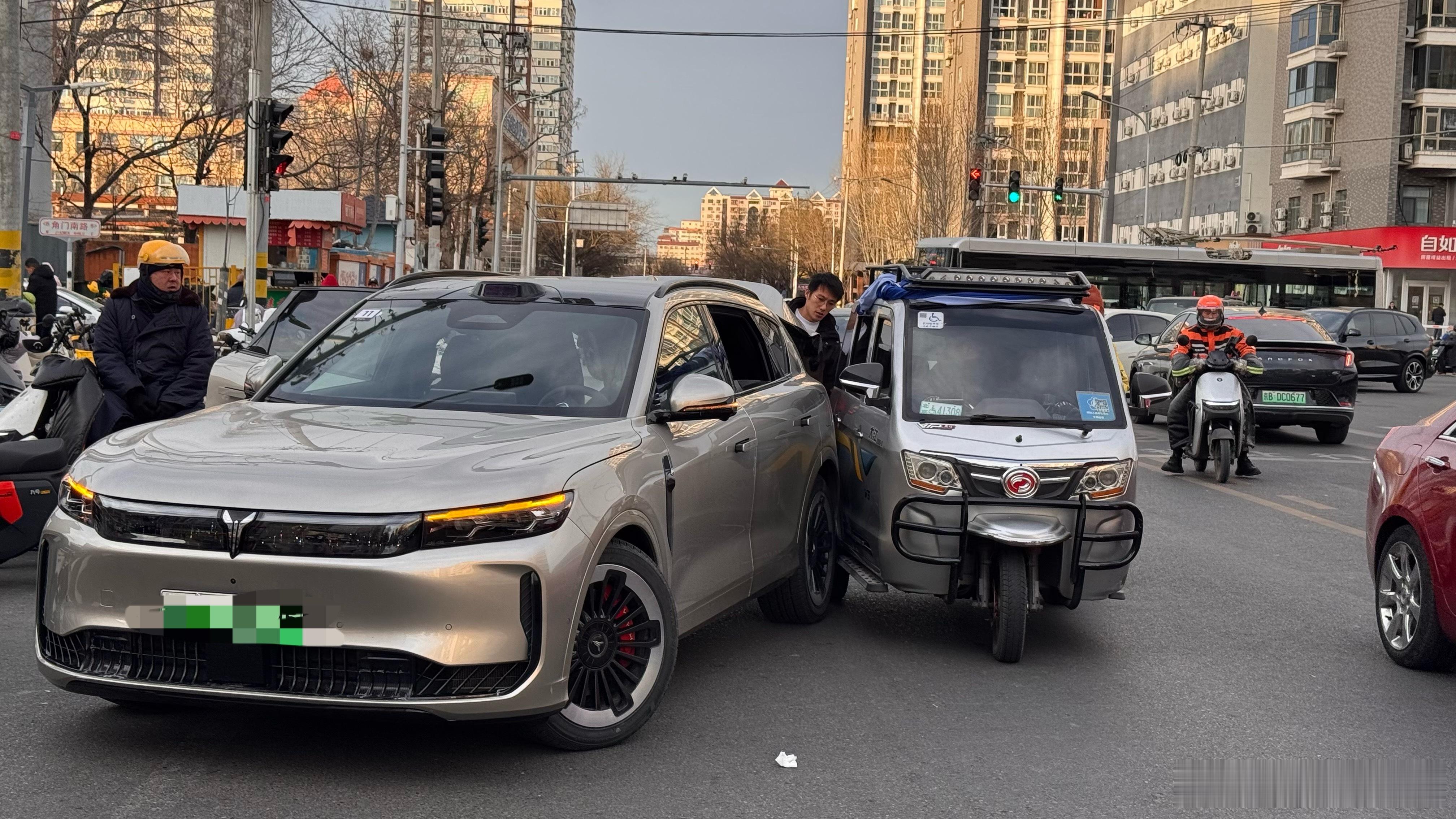刚被北京特产的三轮撞了…当时我正静止等待进入停车场没多久听到“duang”一声了