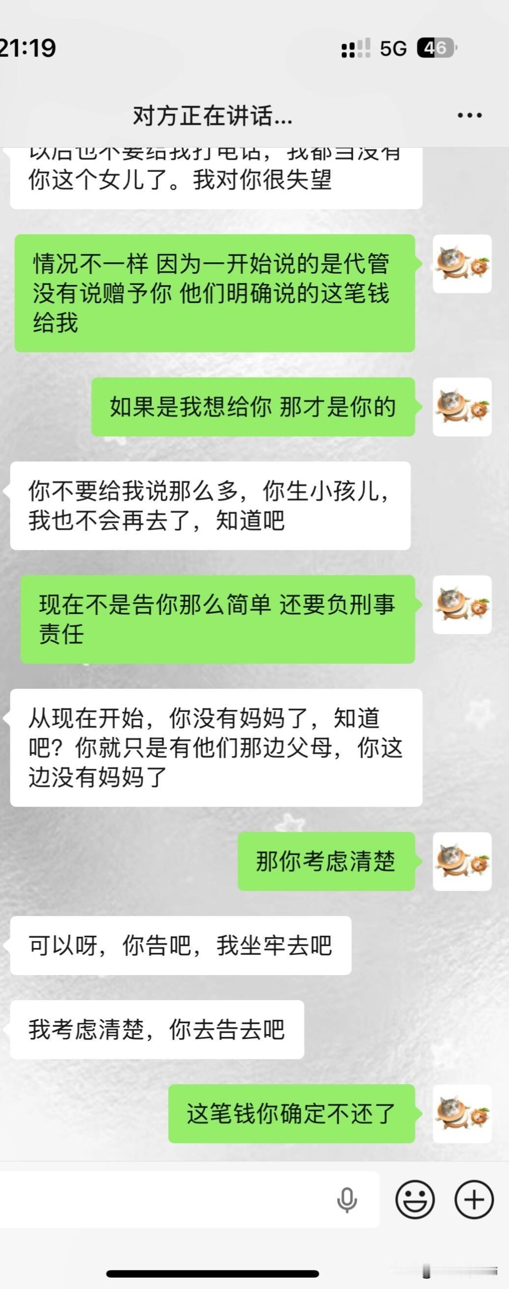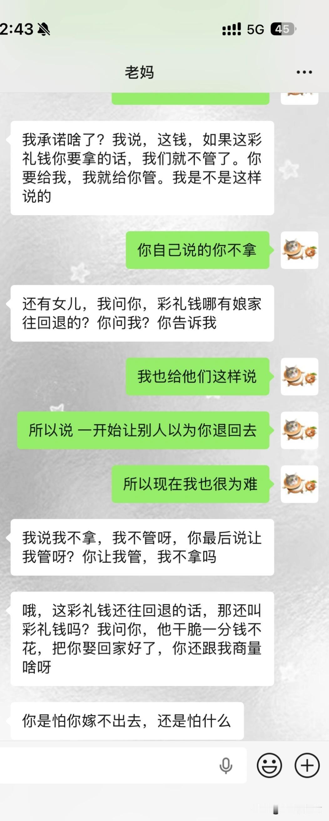 妈妈说彩礼我自己存着结果不给怎么办 从小都是留守儿童且离异 都是爷爷奶奶带大的且妈妈没给过抚养费且没离婚前也没养过我 一开始说的彩礼钱给我自己存着 因为她说她没有钱给嫁妆 所以先拿着我的彩礼钱给我置办东西 剩余的全部钱是以嫁妆的形式结婚当天还给我自己存着 结婚的时候嫁妆她给了一万 在我彩礼里面出 的 现在只愿意彩礼还给我2万 还说着这么理所当然的 而且她就我一个女儿 还能做的这么绝 好想起诉她…(我小时候抚养权是给我爸的,但是他更坏 他们离婚原因是他出轨 现在的老婆就是那个3 特别坏 我小时候去他们家吃一顿饭都不让我吃 也不让我爷爷奶奶过去吃饭…这次结婚我就没让他插手过一丁点,他不止要彩礼还要多加10万 直接不搭理他了 她跟我妈情况一样 都是没养过没给过钱 小时候生下来就扔给爷爷奶奶也不管)