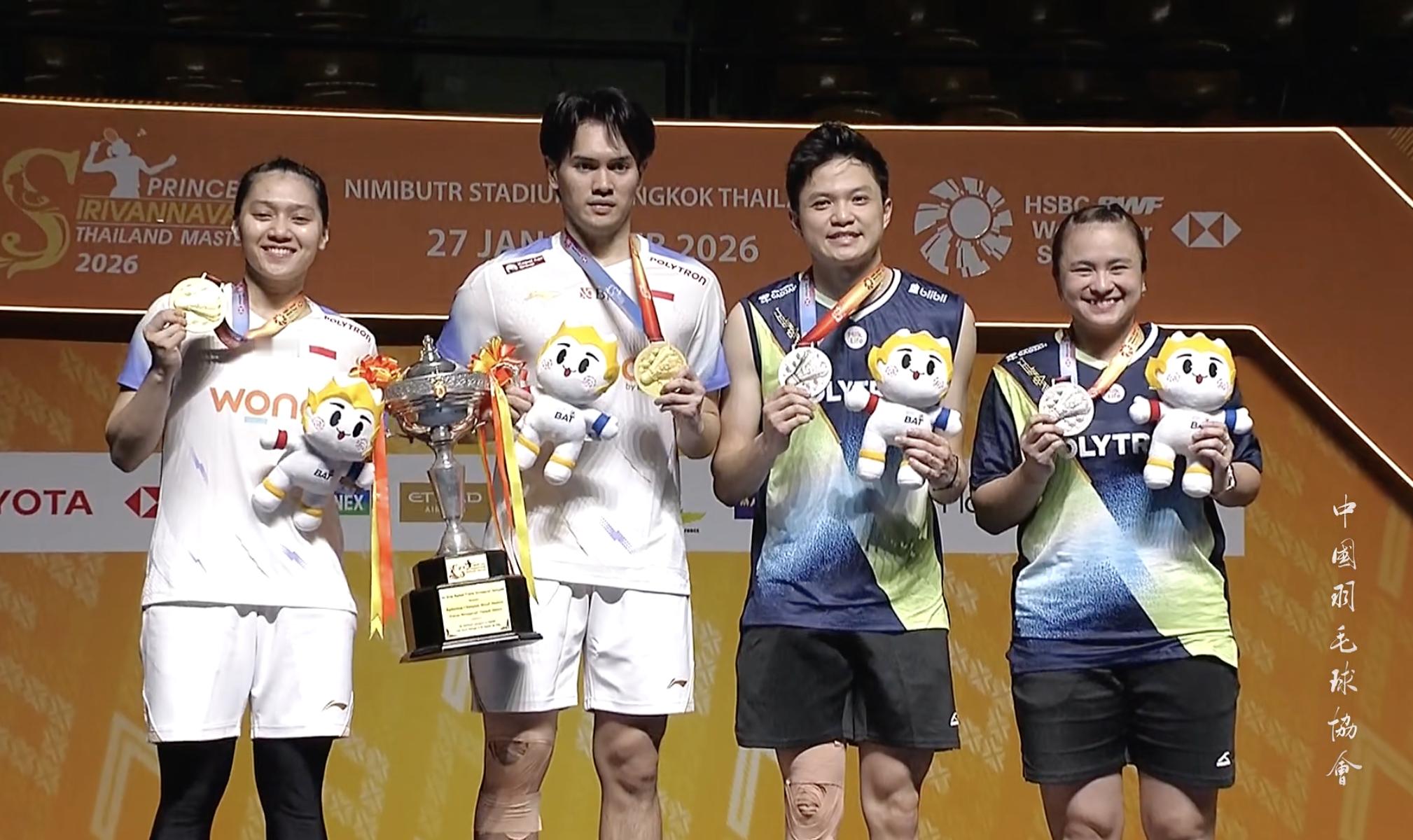 🏆混双冠军:阿德南/贾米尔🇮🇩🥈混双亚军:赛蒂亚布迪/梅拉蒂🇮🇩恭喜四位!🎉🎉🎉2026年泰国羽毛球大师赛