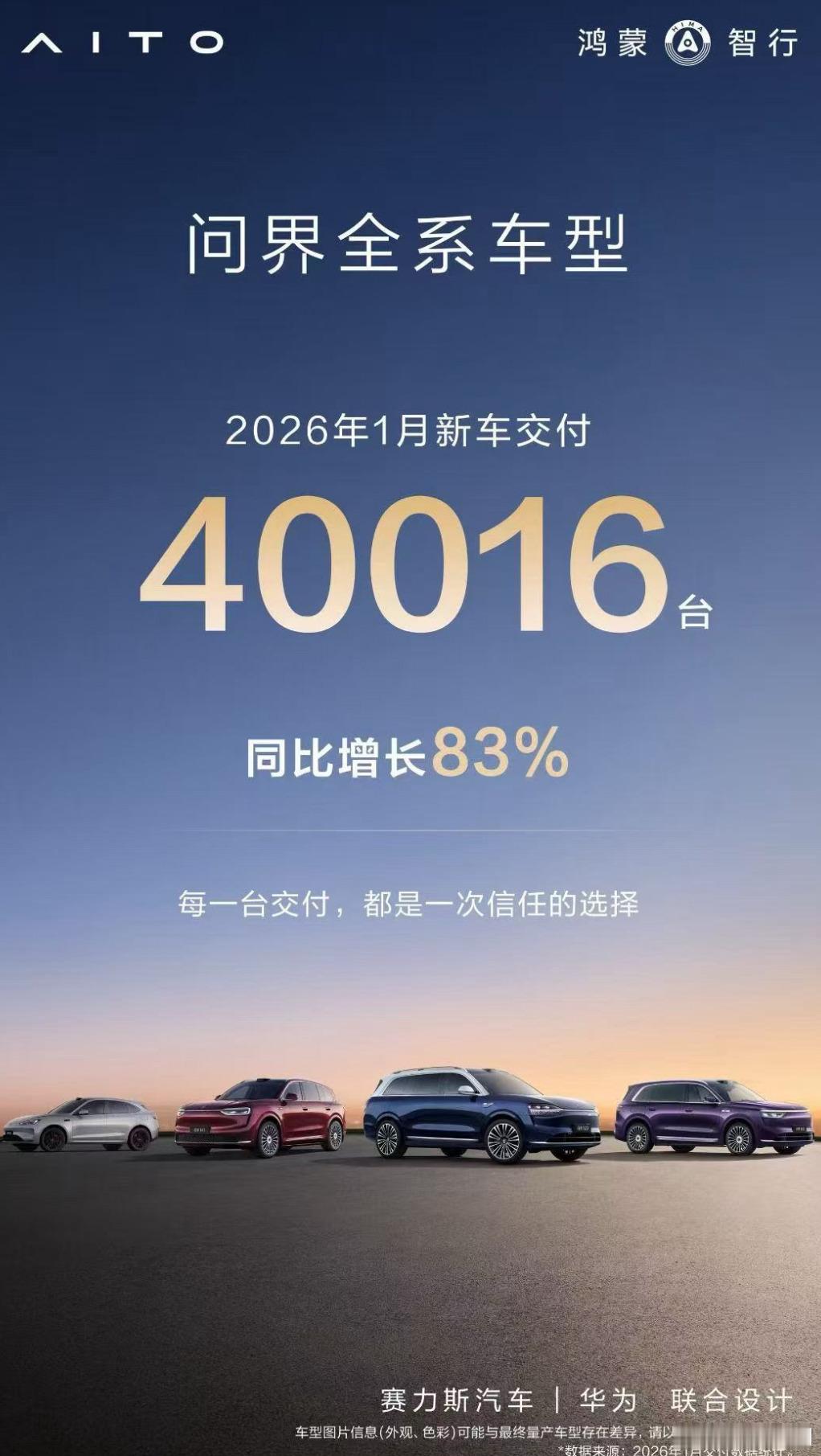 1月部分新势力交付情况:问界:40016台;小米:39000+台;零跑:32059台;理想:27668台;蔚来公司:27182台(蔚来20894,乐道3481,萤火虫2807);小鹏:20011台;