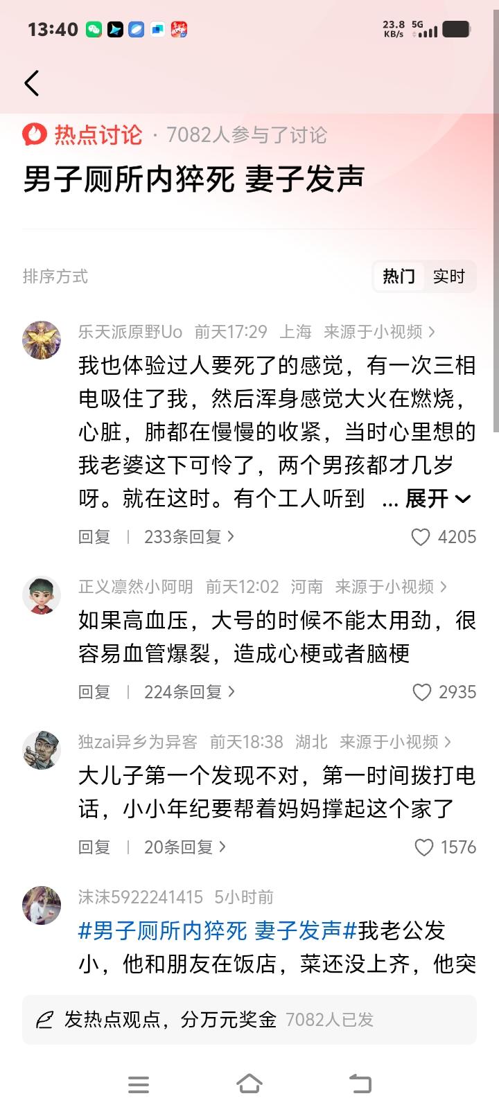 河南30岁男子厕所猝死,妻子哭诉细节撕开千万家庭隐痛:不是累垮的,是马桶上这3个“夺命习惯”在悄悄偷走生命! 那个清晨,他像往常一样走进厕所,却再也没能走出来。三十岁的年纪,三个年幼的孩子,一位正在化疗的父亲,全家的顶梁柱,就这样猝然倒在了最私密的空间里。妻子的哭诉声里,满是懊悔与无力:“他总说胸口闷,我们以为是胃病……他上厕所总爱看手机,一蹲就是半天……” 这不是电影剧本,而是近日发生在河南安阳一个普通家庭的血泪现实。一时间,“厕所猝死”这个触目惊心的词条,像一根尖锐的刺,扎进了无数中年人的心里。我们总以为猝死遥不可及,却不知危险就藏在最日常的角落。 你以为元凶是熬夜加班?是生活重压?医生复盘后指出,压垮他的,其实是马桶上三个你我可能都有的“习惯”。这些习惯看似无害,却在分秒之间,将心脑血管推向悬崖边缘。 第一个致命点,是那“屏住呼吸的一瞬间”。很多人排便时习惯憋气用力,尤其是有便秘困扰的人。就在你全身紧绷、脸涨通红的那一刻,腹内压力急剧飙升,血压瞬间可达到平时的两倍。这对于本就因疲劳而脆弱的心脏和血管,无异于一次“海啸式”的冲击,极易诱发急性心梗或脑出血。 第二个隐形杀手,是“舍不得离开的半小时”。刷短视频、看新闻、打游戏,厕所成了中年男人难得的“精神避难所”。然而,长时间保持蹲坐姿势,下肢血管受压,血流速度减缓,血栓悄然形成。一旦血栓脱落,随血流堵塞肺动脉,致命的肺栓塞可能在几分钟内夺走生命。狭小空间里的缺氧,更是雪上加霜。 最让人后怕的,是第三个动作——“起身那一刻的晕眩”。久坐后猛然站起,血液因重力迅速向下肢回流,导致大脑瞬间供血不足,造成“体位性低血压”。眼前一黑、头晕目眩,对于有潜在心脑血管问题的人,这短短几秒的晕厥,就可能造成摔倒撞击或诱发更严重的心脑事件。 他的妻子回忆,他生前常喊累,肩膀酸痛,却从未认真去做过一次心脏检查。这何尝不是千万中年人的缩影?总以为身体是铁打的,总想着扛一扛就过去了,把身体的警报误读为普通的疲劳。直到悲剧发生,才惊觉那些细微的信号,原来是生命最后的呼救。 心内科医生疾呼:厕所早已不是绝对安全的港湾,而是猝死的高发地!数据显示,我国每年有超过十万例意外发生在如厕过程中。中年男性,特别是上有老下有小的家庭支柱,因长期压力、作息紊乱,血管年龄可能远超实际年龄,一次用力的排便,就可能成为压垮骆驼的最后一根稻草。 避免悲剧,刻不容缓。请记住这四个保命要点:如厕时间请控制在十分钟内,别让手机偷走你的健康;排便时放松,切勿屏气用力;起身前,先在马桶上静坐半分钟,然后缓慢站起;最重要的是,定期体检,关注血压血脂,别把胸闷、肩背放射痛不当回事。 他的微信签名还留着:“为了这个家,拼了。”可如今,家还在,顶梁柱却倒了。留下的是满墙的奖状,和再也无法完整的全家福。这个故事,敲响的不仅是健康的警钟,更是一记关于生命敬畏与家庭责任的沉重叩问。你的平安,才是家人最大的财富。 厕所猝死 中年危机