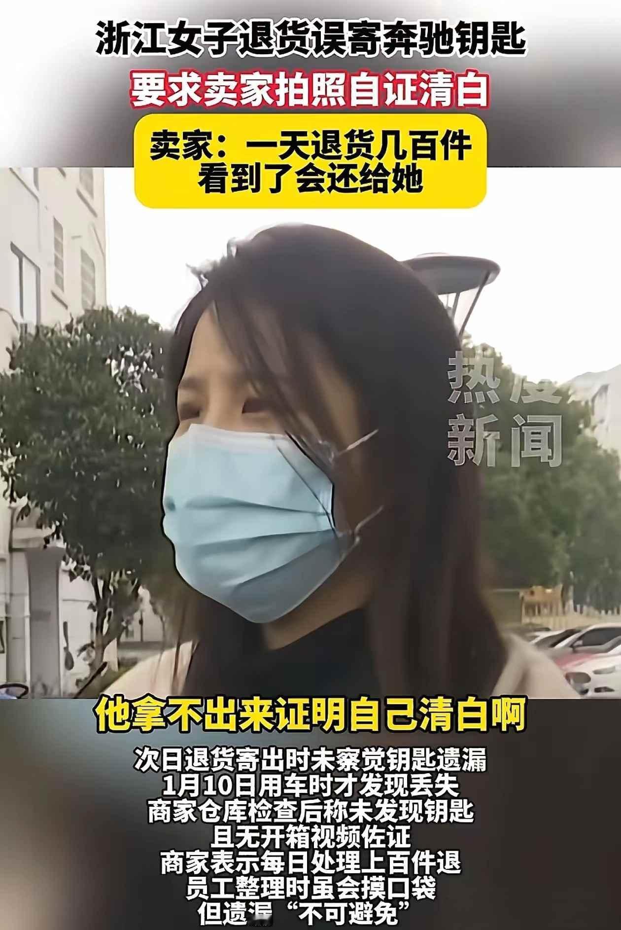 这下出名了, 不仅全网,估计全国人民都知道了 谁能想到,浙江一位女子竟然花了6000块钱给自己买了个教训。 去年冬天,杭州有个姑娘在直播间买了件羽绒服,穿了三天觉得不合身,就按平台规矩申请了七天无理由退货,快递员来取件时没人发现,衣服内袋的夹层里藏着一把银钥匙。 这把钥匙是她奔驰GLC的备用钥匙,配一把得花快一万块,她直到收到商家拒收通知,才想起来钥匙可能还留在包裹里,打电话问的时候商家说仓库每天处理几百件退货,捡到的东西都会交到失物招领,可现在过了三天公示期,实在找不到了。 事件在短视频平台传开后,网友发现更多细节,退货的商品吊牌被扯掉大半,衣服肩臂处有明显穿过的痕迹,有人翻出商家以前的评价,发现这种纠纷不是第一次,现在双方各说各的,商家说不可能拿客户的东西,女子则觉得对方根本没把责任当回事。 这场看起来有点荒唐的纠纷,让很多人看清了网购里的模糊地带,七天无理由成了试用,快递包裹一寄走就没了影,到底该消费者自己认栽,还是商家得把验货的环节做牢一点,评论区里不少人翻出自己碰过的类似事,更多人开始盯着要退的包裹,一样一样检查清楚。