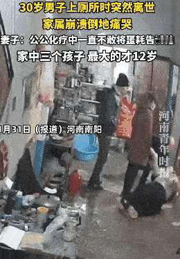30岁男子上侧所的功夫就发生了心梗去世了,人生与死简直就是分分钟的时间,全家人都眼睁睁看着他倒下了,太难受了,三个年幼的孩子,老父亲还在医院做化疗,根本不敢告诉他,妻子倍受打击,很迷茫,人生太难了。