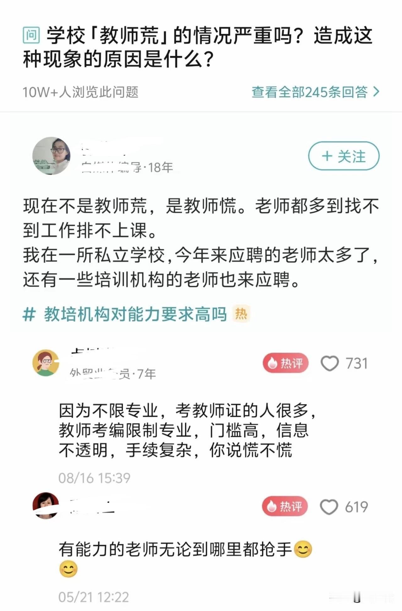 这位博主总结的很到位,现在不是教师荒,而是教师慌。不限专业,考教师证的人越来越多,而教师考编又限制专业,门槛拉高。导致的结果就是,应聘的教师越来越多,工作排不上课…..#寻美三湘# #长沙新朋友#