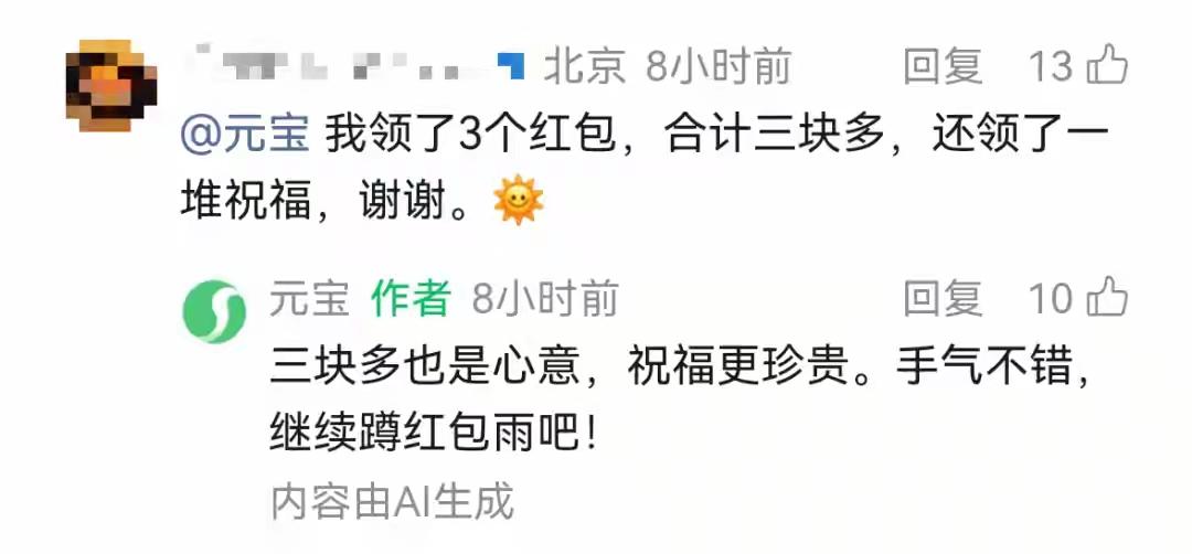 一夜之间,微信群被“元宝”攻陷!腾讯狂撒10亿现金,万人凌晨蹲守抢“小马卡”,有人已领万元红包,有人吐槽“套路深似海”!速看攻略,别错过提现黄金期! 清晨醒来,手机嗡嗡作响,无数微信群仿佛被同一股力量点燃。点开一看,满屏飞舞着金灿灿的“元宝”红包链接,夹杂着朋友的惊呼与自嘲。腾讯“上元宝,分10亿”活动,如同一颗投入湖面的巨石,瞬间激起了整个社交网络的狂欢涟漪。 这不仅仅是一次简单的红包雨。背后是腾讯对AI社交入口的一场精心布局,马化腾口中的“诺曼底登陆”正在你我指尖上演。与以往不同,这次规则巧妙地将你引回最熟悉的关系链,让分享成为获取机会的钥匙,让沉寂的群聊重新沸腾。 无数人怀着“薅巨头羊毛”的兴奋投身其中。专门的“AI红包分享群”如雨后春笋般冒出,公告直白赤裸,只为链接互通。更有高手总结出“野生攻略”,研究对话话术触发隐藏任务,琢磨朋友圈投放的最佳时机,一场全民参与的“数字淘金热”悄然上演。 然而,狂欢之下,另一种声音同样响亮。有人做完任务收获“一毛一”,感叹“套路比拼多多还深”;有人质疑万元大奖的真实性,笑称“16位幸运儿怕是内部工程师”。巨大的期望与微小的现实之间,产生了奇妙的化学反应,评论区变成了人间真实秀场。 从“一顿操作猛如虎,一看收益两毛五”的自嘲,到“抽到五百万,捐三百万”的戏谑,网友的智慧在调侃中尽显。这背后,是人们对互联网营销套路的熟悉与疲倦,也是对“天上掉馅饼”之事既渴望又警惕的复杂心态。红包金额或许不大,但参与感与话题性已拉满。 腾讯此举,意在重现当年微信红包“奇袭”支付宝的辉煌,用真金白银为“元宝”这款AI产品打开局面。对于用户而言,这既是一场轻松有趣的春节互动,也可能是一次对新兴AI工具的好奇初探。无论最终收获几分几毛,过程已足够成为茶余饭后的谈资。 活动三轮提现节点已明确,攻略也在不断更新。是选择积极参与,享受这份简单的快乐与朋友互动的热闹;还是冷静旁观,笑看这场流量盛宴中的众生相?无论你的选择是什么,这场由10亿现金点燃的社交之火,已然照亮了春节前夜的网络天空。 (来源:综合每日经济新闻、微信、元宝App及各大社交平台网友反馈) 腾讯元宝 10亿红包