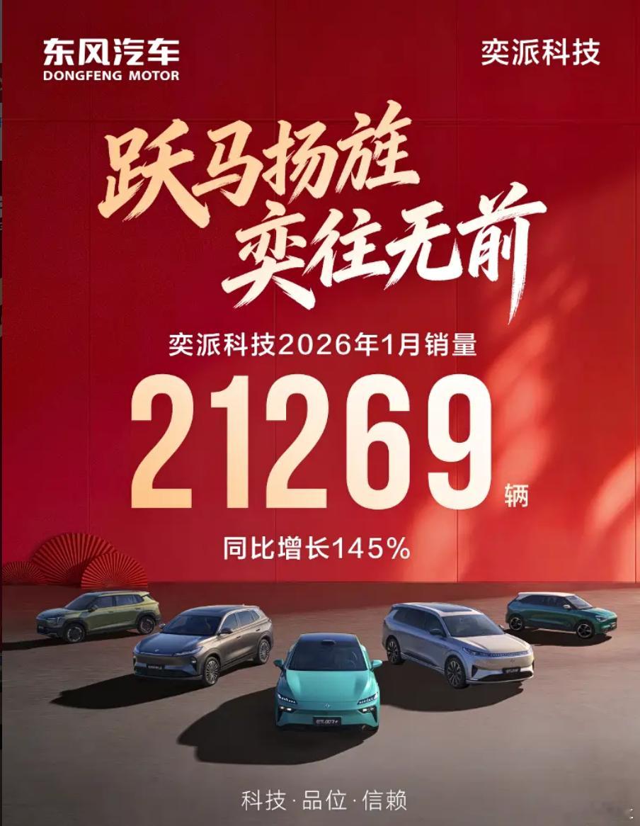 东风奕派1月销量超2.1W,虽然舆论场上声量不是很大,却取得了不错的成绩。2026年也是奕派的产品大年,会有3款新车,分别是搭载满血华为的大六座SUV、主打大空间的大五座SUV以及一台主打性能的轿跑车。预计随着产品变得更丰富,奕派销量也会有进一步的提升。东风奕派