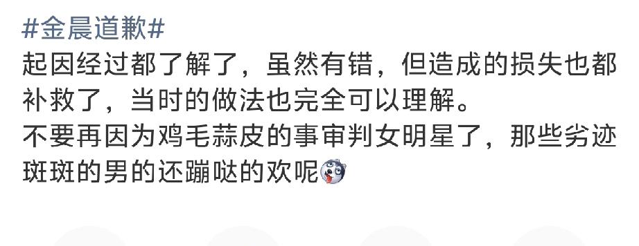 金晨这公关,是真的好牛! 前一天还因为“肇事逃逸+助理顶包+疑似骗保”炸上热搜,几十亿阅读量,还不回应,都以为这姑娘怕是要被封杀了。结果第二天,一纸声明直接就把她从肇事方,摇变成了“为护狗狗受伤的人美心善女明星”。 现在但凡有人敢质疑,立刻就有人跳出来说你在挑起男女对立。或者是“多大点事啊?人家都赔偿了,自己还受伤了,你还想怎样?” [捂脸][捂脸][捂脸]金晨