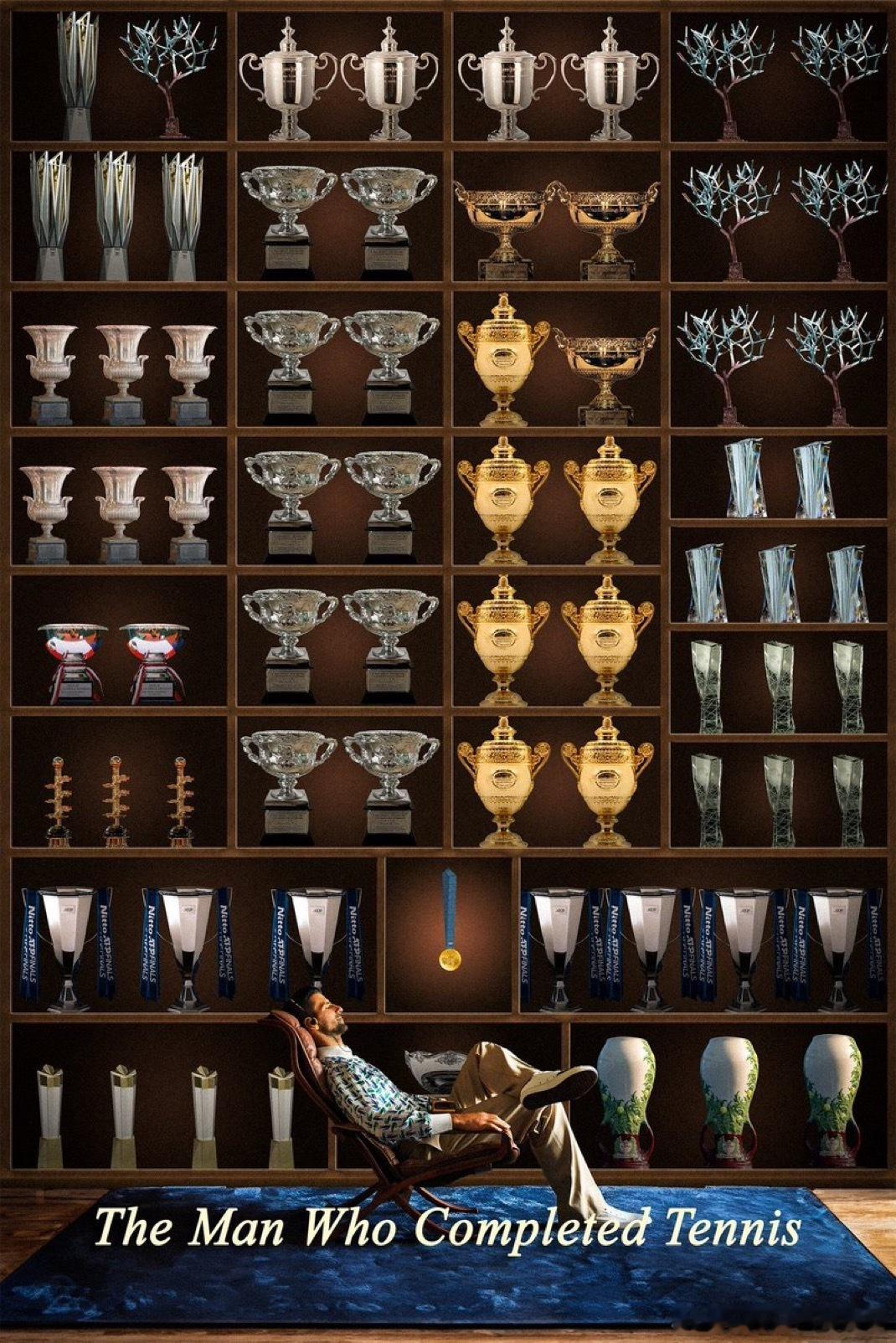 24座大满贯历史第一;40个大师赛(全大师)历史第一;奥运会冠军🏆,戴维斯杯冠军🏆一应俱全;428周世界第一史上第一;8年的年终第一又是历史第一,再加上5个劳伦斯最佳男运动员奖;101个巡回赛单打冠军头衔;38次打进大满贯决赛;大满贯单打胜场超过400场…..