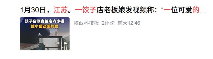 解释不清了!江苏,一男子在一家饺子馆吃饺子时,店主养的猫咪突然凑过去讨食,男子灵机一动,将手机放在桌腿架子上给小猫播放动画片,没想到,小猫竟然看得津津有味,不再打扰男子,也不到处乱跑了!网友:它真的看得懂? 店主刘先生是个实在人,做生意讲究个皮薄馅大、手工现包。那天生意不错,前台后厨两头转,直到这诡异的安静让他停下了手里的活。 一位年轻男食客正埋头对付面前的饺子。几分钟前,这儿还挺热闹。店里那只见过世面的小猫,嗅着肉香就凑了过去。 按照动物的生存逻辑,这是一场耐力的博弈:蹲守、眼神锁定、再时不时来两声软糯的“喵喵”叫,通常总能换来两块肉馅。 但这次的剧本不太一样。问题出在那碟蘸料上。男食客显然是个重口味,往碗里倒了不少辣椒面。这对猫来说,哪里是美味,分明是纯粹的化学武器。 给吃的是害它,不给吃又显得自己冷漠,还要忍受那双直勾勾盯着你的大眼睛。这恐怕是每一个在路边摊遇到“碰瓷”猫咪的人都曾有过的心理拉锯。 这小伙子没有挥手驱赶,也没有尴尬地假装没看见。他做了一个堪称教科书级别的“战术动作”。 掏手机、划屏、选片,然后顺势弯腰,把屏幕亮着的手机稳稳架在了桌腿的横档上。 接着,他冲着那只还在等待肉馅的小家伙勾了勾手指。这动作熟练得就像在招呼一位老朋友:“哥们,肉你是吃不上了,但这儿有比肉更好玩的东西。”原本还在纠结食物的小猫,那一瞬间仿佛被按下了暂停键。 刘先生站在不远处,眼睁睁看着自家那只平时咋咋呼呼的猫,瞬间安静如鸡。它凑到屏幕前,两只前爪几乎要搭上那发光的方块,眼珠子跟着画面里的色彩转动,整只猫进入了一种入定的状态。 那画面实在太具有冲击力:人吃人的饺子,猫看猫的动画片。互不打扰,各自安好。刘先生试探着喊了两声猫的名字。没反应。又喊了一声,还是没反应。在那个时刻,主人的召唤显然敌不过屏幕里那五光十色的动态诱惑。刘先生觉得不可思议,随手拍下这段视频传到了网上,配文大概也是充满了“解释不清”的疑惑。 这事儿一传开,评论区就炸了锅。大家争论的焦点很有意思:这只猫,到底看不看得懂剧情? 有人言之凿凿,搬出了自家案例:“我家猫能盯着《猫和老鼠》看二十分钟,那投入劲儿,比上网课的小孩都专心。” 还有人把这上升到了灵性层面,信誓旦旦地说猫懂人话,下雨天喊一声“外面有雨快回来”,猫真的会驻足回头。 但如果我们剥离掉人类过剩的情感投射,去请教一下冷冰冰的动物行为学,答案可能会让人少几分浪漫,多几分理性。所谓的“看得津津有味”,在生物学上其实是一场视觉欺骗。猫科动物的眼睛是为捕猎而生的顶级雷达。它们对静态细节可能视而不见,但对快速移动的物体有着变态级别的捕捉力。 手机屏幕上那些高频闪烁的色块、极速位移的卡通形象,在猫眼里并不是“汤姆在抓杰瑞”的剧情,而是一堆正在疯狂逃窜的“猎物”。但这又有什么关系呢?那个年轻食客未必懂什么动态视觉理论,但他一定是个懂温柔的人。 在那个充满了辣椒味和面粉香的午后,他用一个电子屏幕,为这只馋嘴的小家伙搭建了一个临时的避难所。这种默契甚至不需要语言。有人推测他家里一定也养猫,否则做不出那么自然的“勾手杀”,也想不到用动画片这招“电子安抚奶嘴”来镇场子。 在这个戾气有时候比辣椒还要呛人的网络时代,我们之所以会被这样的小事打动,或许并不是因为猫有多聪明。 而是因为那个瞬间,人类愿意放下身段,用一种近乎平等的姿态,去回应了一个小生命的渴望。 饺子吃完了,动画片可能也放完了。但在那个江苏的小店里,留下的这点温情,比那碗红油饺子还要暖胃。