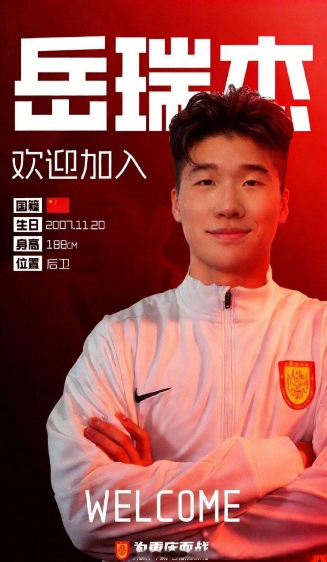 北京时间2月1日,重庆铜梁龙官方宣布,山东泰山18岁后卫岳瑞杰租借加盟俱乐部,公告如下:经与山东泰山足球俱乐部及球员本人友好协商并达成一致,即日起,岳瑞杰以租借形式加盟重庆铜梁龙足球俱乐部,租期一年。待完成相关注册手续后,岳瑞杰将身披重庆铜梁龙战袍,代表俱乐部出战2026赛季中超联赛及其他各项赛事。岳瑞杰,2007年11月20日出生,籍贯山东济南,司职后卫,身高188cm,体重81kg。球员出自山东泰山青训体系,身体素质出色,防守意识与位置感俱佳,具备良好的出球能力与后场推进属性,是国内同年龄段极具潜力的后防线新星。2024年7月,岳瑞杰上调山东泰山一线队,曾随队参与中超、足协杯备战,并多次入选中国U19国家男子足球队集训名单,具备青年国字号履历与职业赛场实战经验。