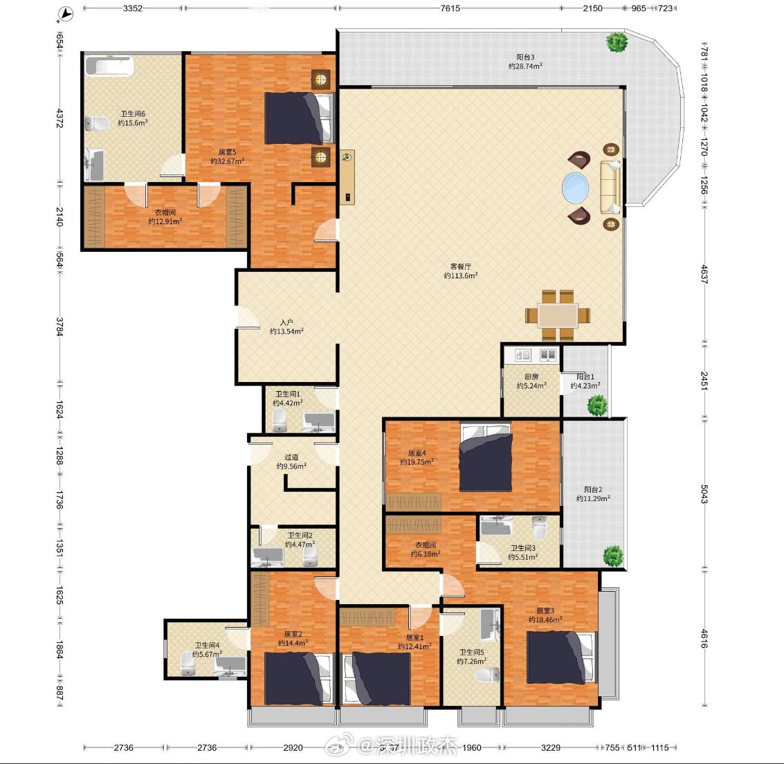 蛇口招商玺家园425平,高楼层,7600万成交,单价17.9万。