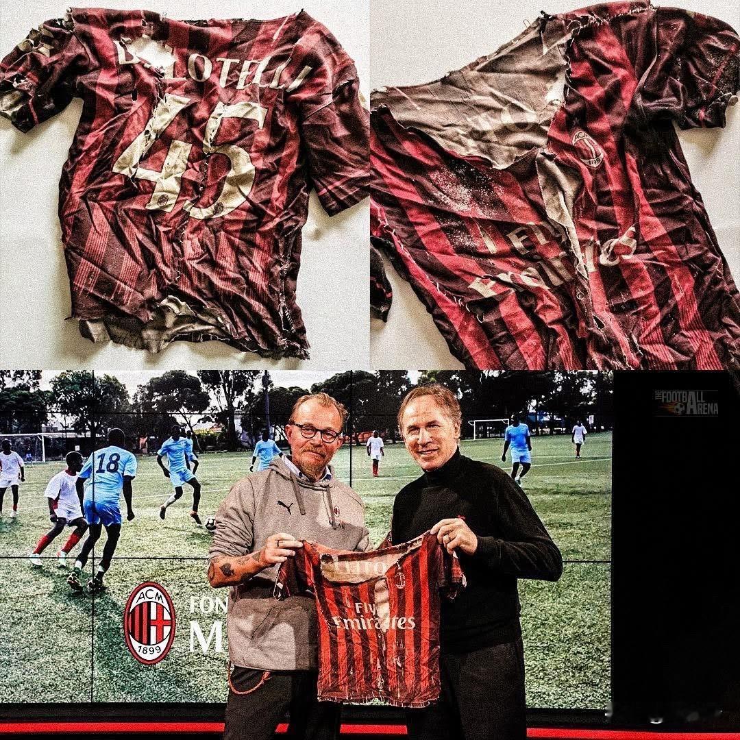 这件受损严重的AC米兰球衣背后有一个感人的故事,它目前在米兰之家的 Mondo Milan 博物馆展出。 2021年,丹麦战地摄影师简·格拉鲁普(Jan Grarup)在南苏丹拍摄洪水影响时,遇到了一个名叫阿贾克(Ajok)的男孩,他穿着这件破旧不堪、经过多次修补的AC米兰球衣。格拉鲁普本人也是米兰球迷,被男孩对球衣的热爱和坚韧精神所感动,提出用一件新球衣交换这件旧球衣。 格拉鲁普将这件破损的球衣捐赠给了AC米兰俱乐部。俱乐部决定将其作为“象征性物品”在博物馆展出,以彰显全球球迷无论年龄或社会地位如何,都紧密相连的归属感和激情。 此外,AC米兰还与联合国儿童基金会(UNICEF)合作,发起了一项慈善倡议,为南苏丹受气候变化影响的儿童提供支持和捐款。2022年,AC米兰甚至推出了一款受这件球衣启发的特别版第四球衣。