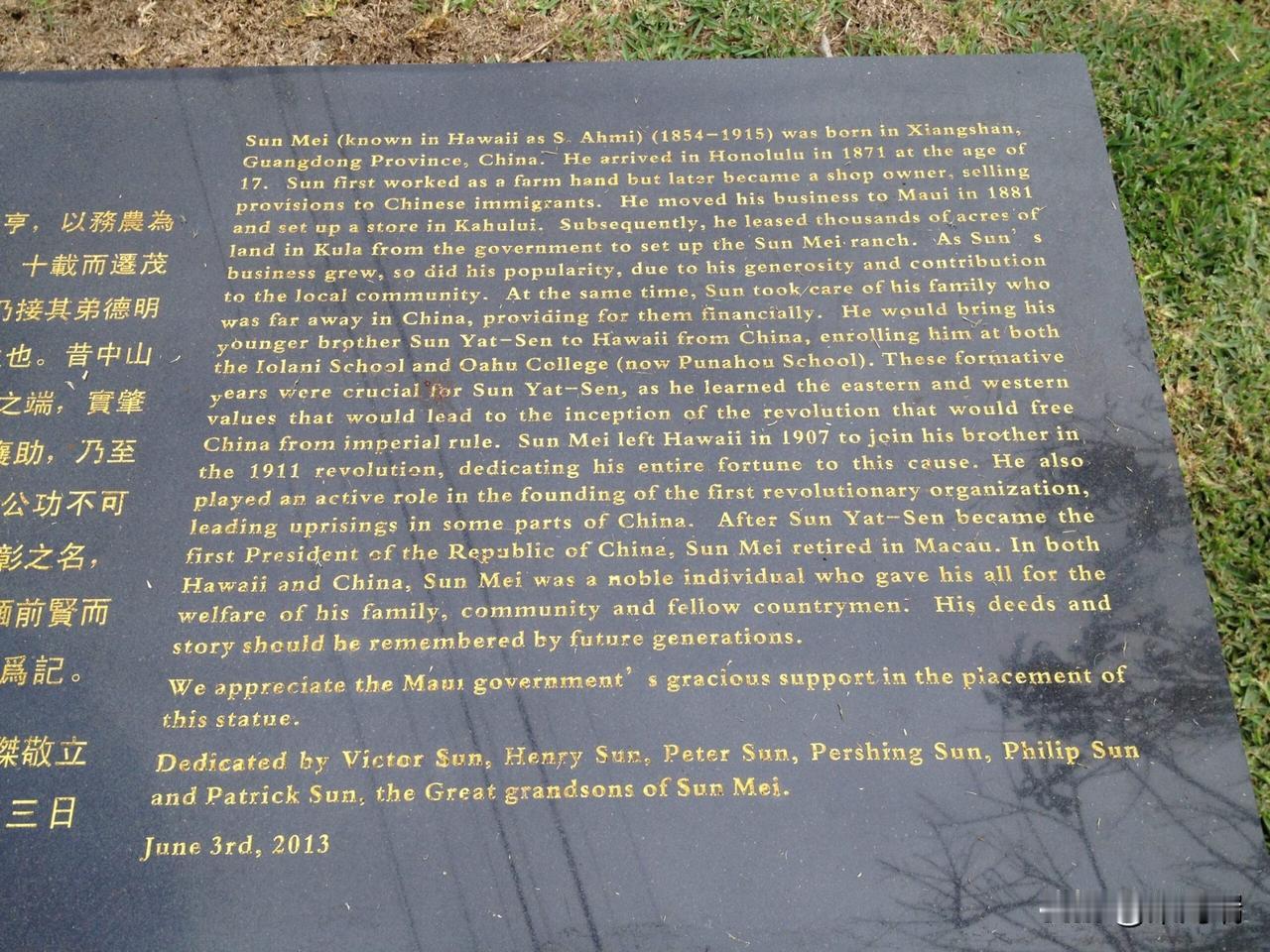 孙中山他哥,孙眉,在夏威夷坐拥6000英亩地、数万头牛马,人送外号“茂宜王”。谁能想到,这份家业最终被他弟弟孙中山的革命事业烧得一干二净? 说起来,孙眉这个人,在十九世纪末的夏威夷群岛,确实是个响当当的角色。 1871年,十七岁的孙眉跟着母亲从广东香山漂到檀香山那会儿,兜里只有几枚铜板。 他先在亲戚开的农场里干杂活,三年后就跑到茂宜岛自立门户。当地人回忆,孙眉开荒的劲头简直不要命——天没亮就扛着锄头进山,天黑透了才回棚屋。 他硬是把一片乱石滩啃成了耕地,又跟土著酋长套近乎,用极低的价格一口气买下六千英亩山地。 他买下的这片山地从海岸线连到三千英尺的高山,水草丰美极适合养牧,他不光种庄稼还大批养牛马,没几年就雇了几十号工人打理,这规模在当时的夏威夷华人里独一份。他还懂因地制宜修水坝灌溉农田,那水坝按中国长城的法子垒的,现在还立在茂宜岛,当地人都叫它迷你长城,能看出来他不是光靠吃苦的莽夫,脑子比谁都活络。 1880年他在檀香山开了第一间商店,三年后直接搬去茂宜岛扩大经营,农、牧、商三路齐走,到1885年前后,他的产业已经是茂宜岛头一份,“茂宜王”的名号就这么喊开了,那会儿的他,是真真正正的夏威夷华人首富。这时候的孙眉,早不是那个兜里只有几枚铜板的穷小子,可他从没忘本,老家翠亨村的亲戚有难处,他次次寄钱接济,骨子里的仗义刻得深。 1878年他特意寄信回香山,把母亲和十二岁的孙中山接来檀香山,本想让弟弟帮着打理生意,也好有个依靠。可孙中山见了檀香山的西式教育,死活不愿经商,一门心思要读书,孙眉愣了愣竟一口答应,直接把他送进当地有名的意奥兰尼学校,每年的学费生活费从不含糊,哪怕后来孙中山两次回国读书,他的汇款也从没断过。换旁人早逼着弟弟子承父业了,孙眉偏不,他懂弟弟的心思,更舍得为弟弟的未来花钱,这份兄弟情,重得很。 1894年孙中山回檀香山要建兴中会搞革命,跟他说清意图时,他只说了句“志大言大”,转头就第一个捐款,还拉着亲戚华侨二三十人入会,直接当了茂宜分会主席。那时候谁都知道革命是掉脑袋的事,更别说拿钱砸进去,孙眉却半点犹豫没有,他不是不懂其中的风险,只是信自己的弟弟,信弟弟要做的事是对的。 1895年广州起义缺军饷,他二话不说把农场的牲畜贱价卖掉,一分不少全充了军费,那可是他半辈子的心血。1904年孙中山在檀香山发革命债券,他又变卖上千头牛马认购,甚至把自己珍藏的龙涎香都拿出来卖了,就为凑够孙中山奔走革命的旅费。龙涎香多珍贵不用多说,那是他压箱底的宝贝,可在他眼里,弟弟的革命路,比什么宝贝都金贵。 1906年夏威夷改了租地条例,他的农场本就受了重创,再加上接二连三为革命掏钱,偌大的家业直接被掏空,他请律师上诉败诉后,只能正式宣布破产。他带着母亲回香港定居,把妻子留在茂宜岛拍卖剩余财产,几十年的经营,说没就没,可他半句怨言都没跟孙中山说过。换谁把家底败光了都得怨,可孙眉不,他心里清楚,革命不是一朝一夕的事,总要有人垫钱垫力。 回到香港的孙眉也没歇着,依旧扎进反清革命里,跟人一起缝起义的旗帜,帮着联络会党,1910年被香港政府驱逐出境,转头就去槟城策划广州起义,后来又在广州湾易名黄镇东,任同盟会南方支部副部长,组织民军收复雷州半岛,他从一个大农场主,硬生生熬成了革命老兵,手里的锄头换成了革命的旗帜,那份拼劲,从没变过。 辛亥革命后有人推举他当粤都督,这么大的官摆在面前,他却听了孙中山的劝,一口回绝。孙中山说他资质过人却不熟政治,怕他受累,他就欣然接受,转头去搞实业安置民军,半点没因没当上大官闹情绪。他这辈子从没想过谋官谋利,支援革命,帮衬弟弟,从来都是真心实意,半点私心没有。 1915年孙眉在澳门病逝,享年61岁,后来国民政府特意拨款把他的遗骨迁回翠亨村厚葬,还建了寿屏堂纪念他。他这辈子,从十七岁的穷小子到叱咤夏威夷的茂宜王,再到为革命散尽家财的革命者,一手挣下的万贯家财,全给了弟弟的革命事业,到最后,什么都没留下,只留下了一个为革命牺牲的名字。 现在总有人说亲兄弟明算账,谈钱就伤感情,可孙眉用一辈子证明,真正的亲情,从来不是计较得失,真正的家国大义,也从不是嘴上说说。他不是革命领袖,却是革命背后最坚实的支撑,没有他的倾囊相助,孙中山的革命路,只会难上百倍。历史不该只记住站在台前的人,更该记住孙眉这样,为了信仰和亲情,甘愿把一切都烧光的人,这样的人,才是真正的英雄。