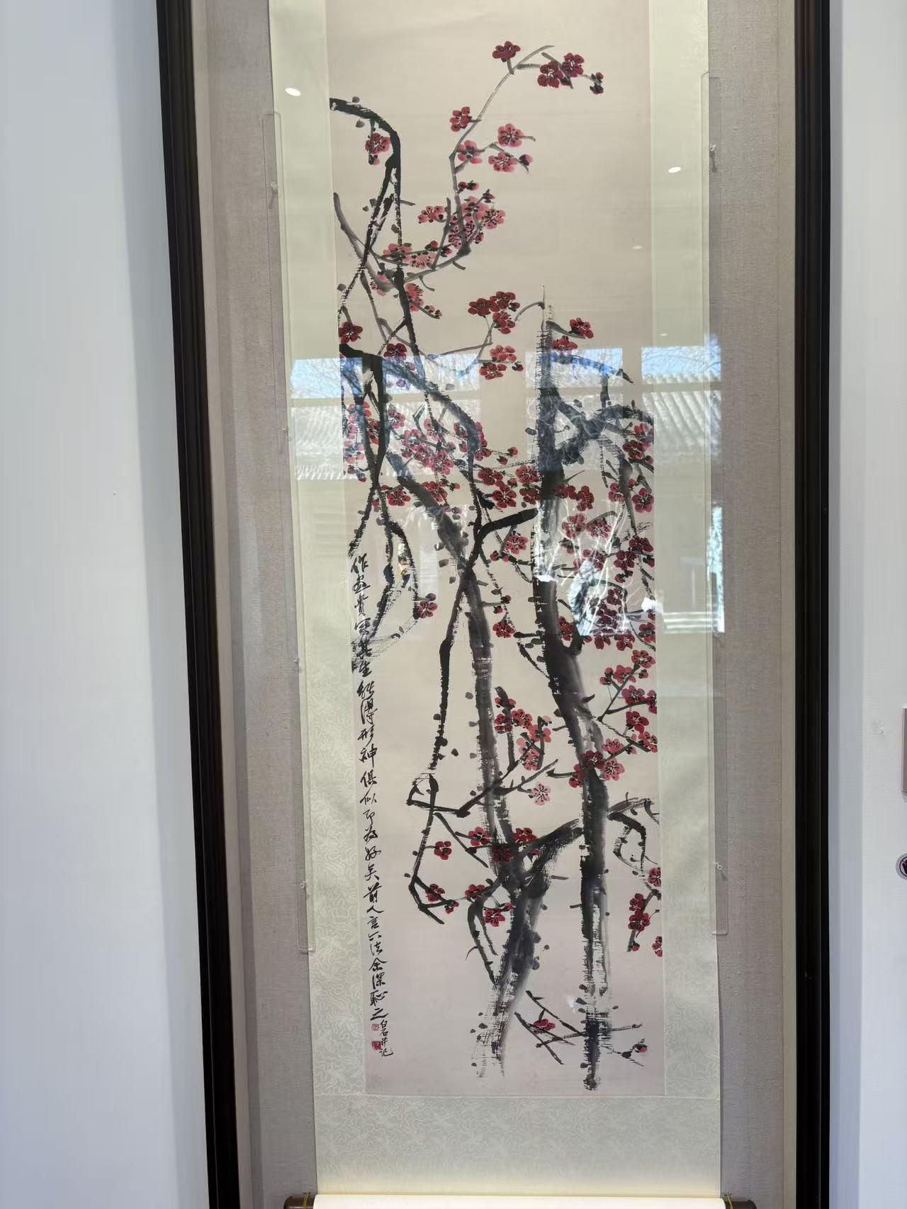 齐白石《梅花八哥》。立轴 水墨纸本133×44cm。题识:人生欢乐几多时,常