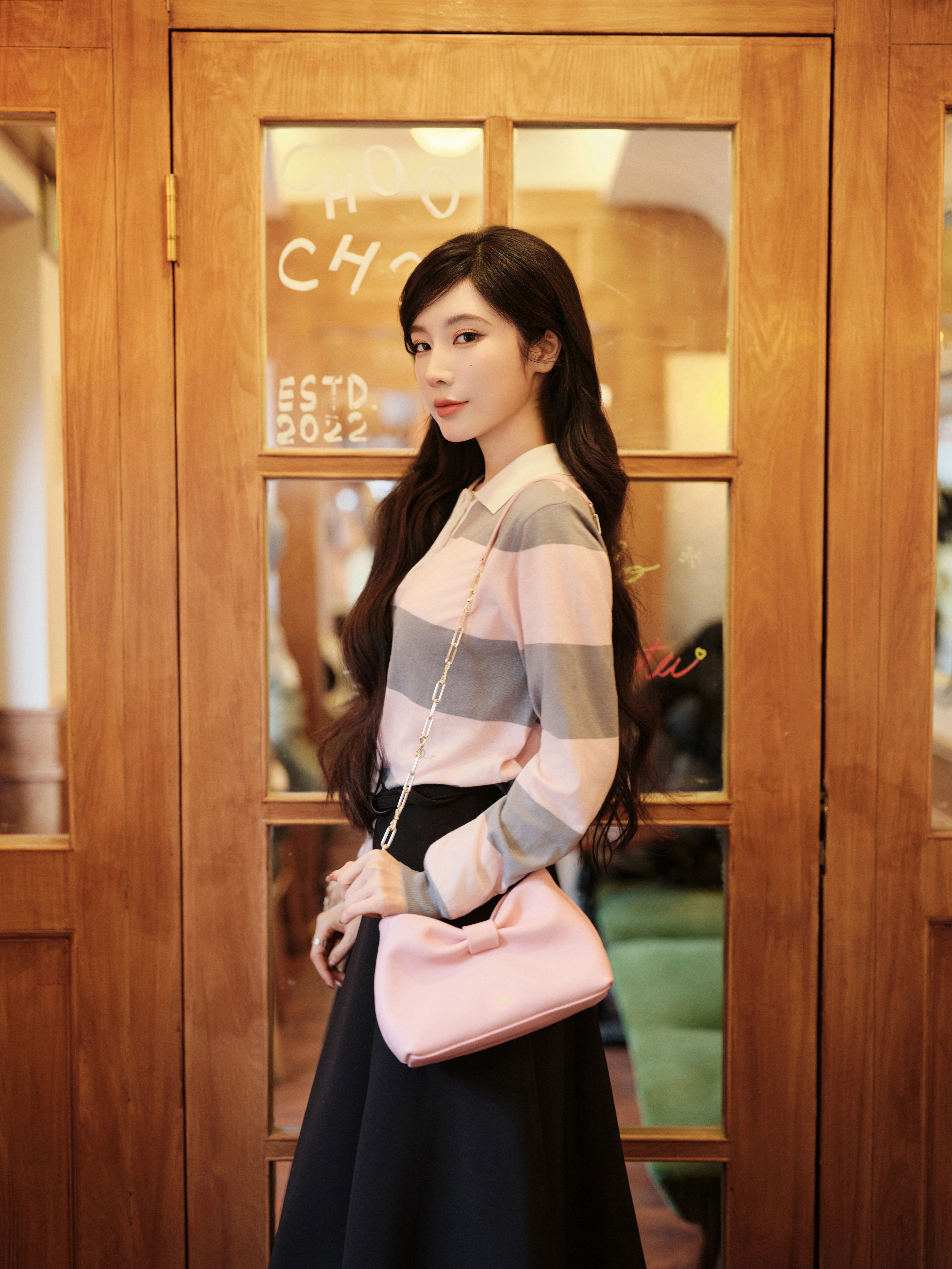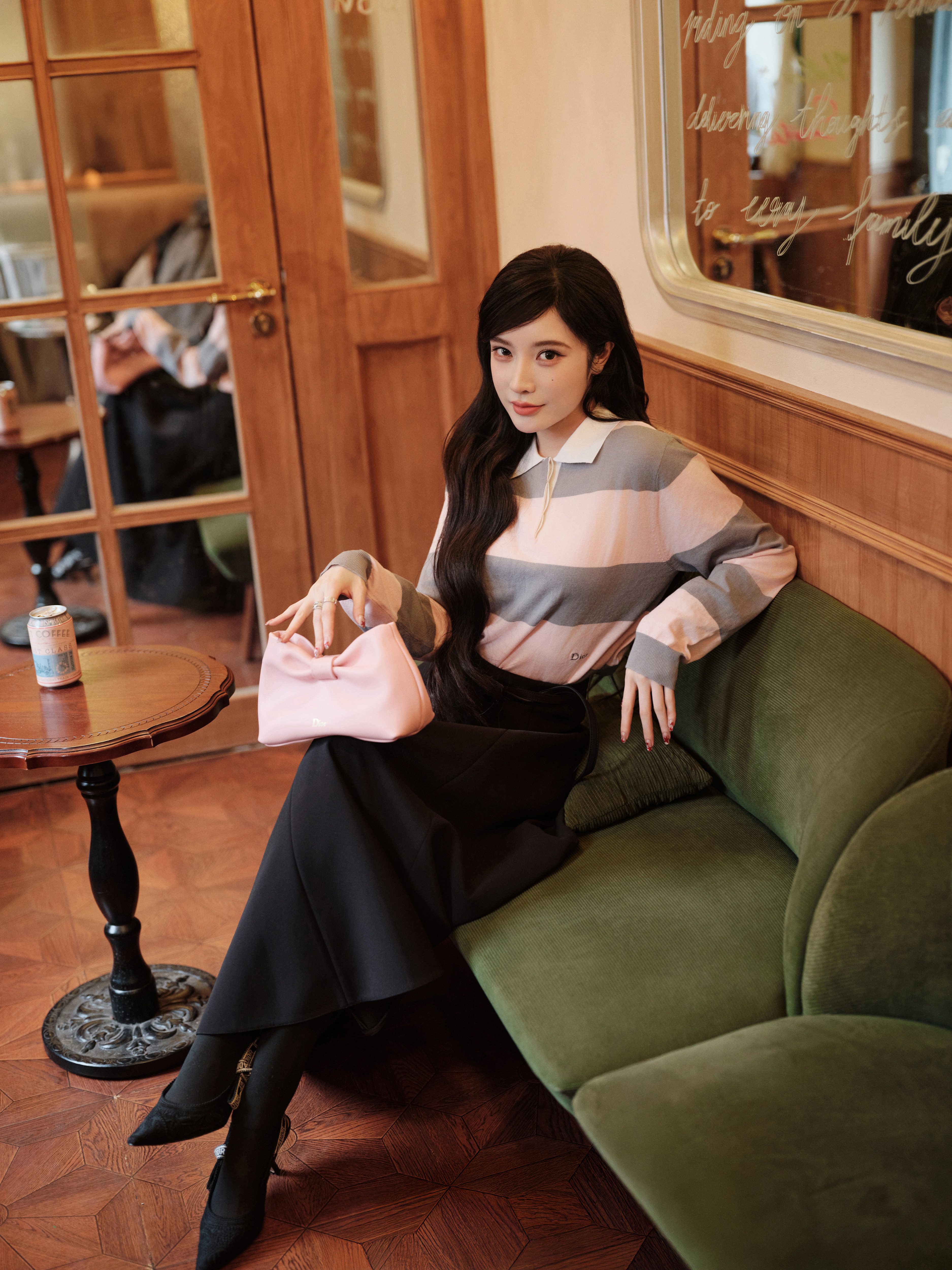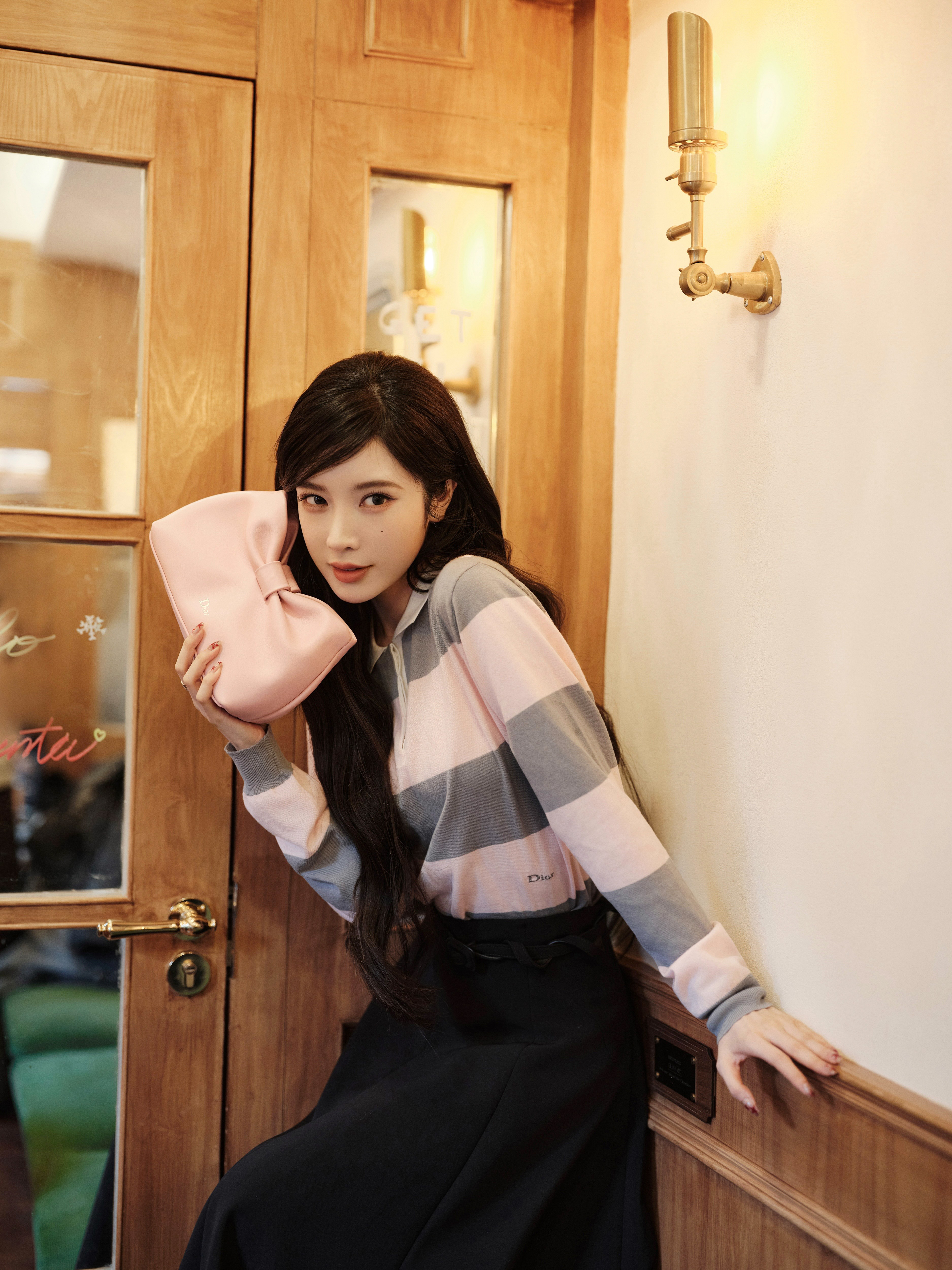 来自演员戴燕妮的一组造型新片 ,身穿 Dior by Jonathan Anderson 首季 2026 春夏成衣系列出镜 ,粉灰撞色条纹 Polo 衫搭配黑色伞裙 ,融合复古学院风与法式优雅感的全新搭配 ,很是眼前一亮哈 !点睛的 Dior Bow 系列手袋则以独特的蝴蝶结造型诠释迪奥标志性元素 ,柔雾粉色呼应色调 ,感受属于 Dior Girl 明媚又灵动的独特韵味 ~ 🎀