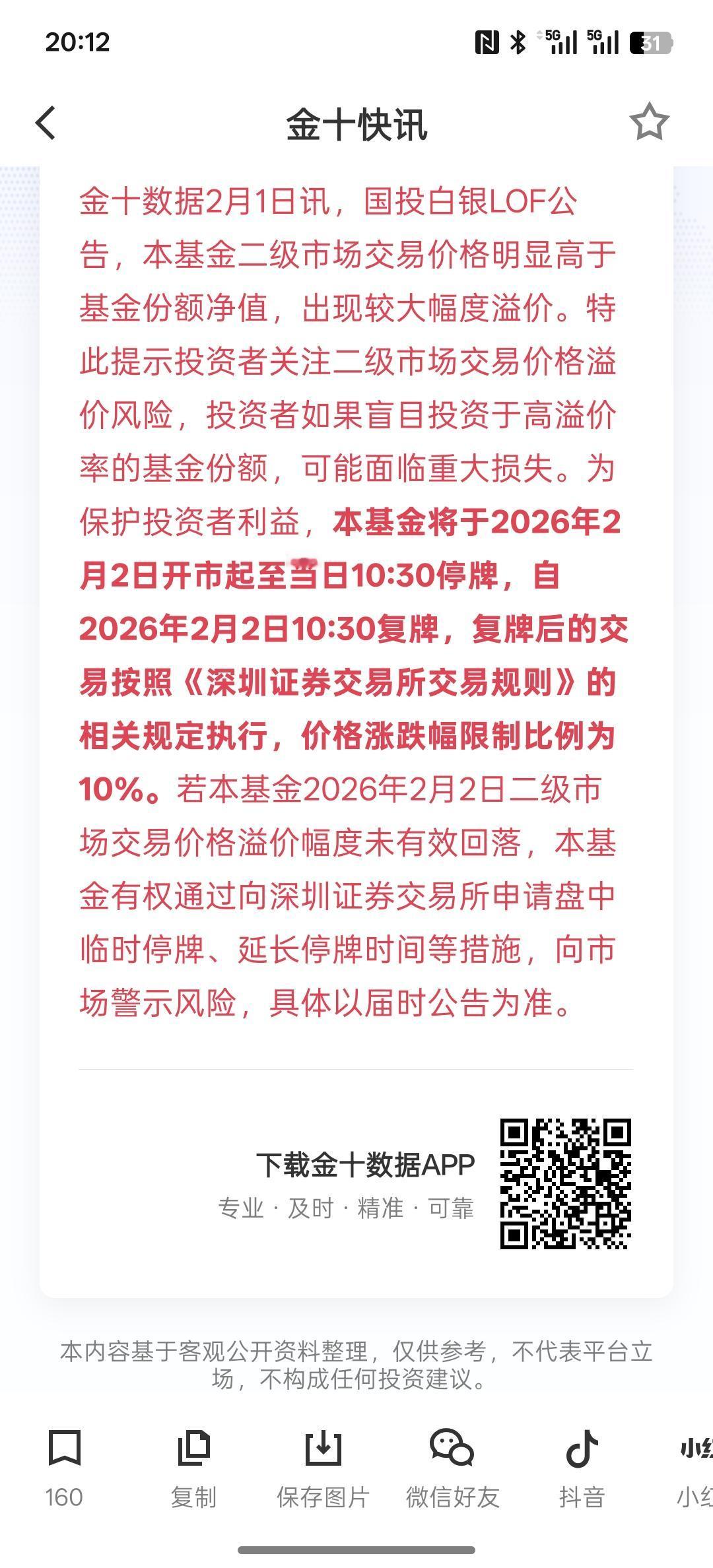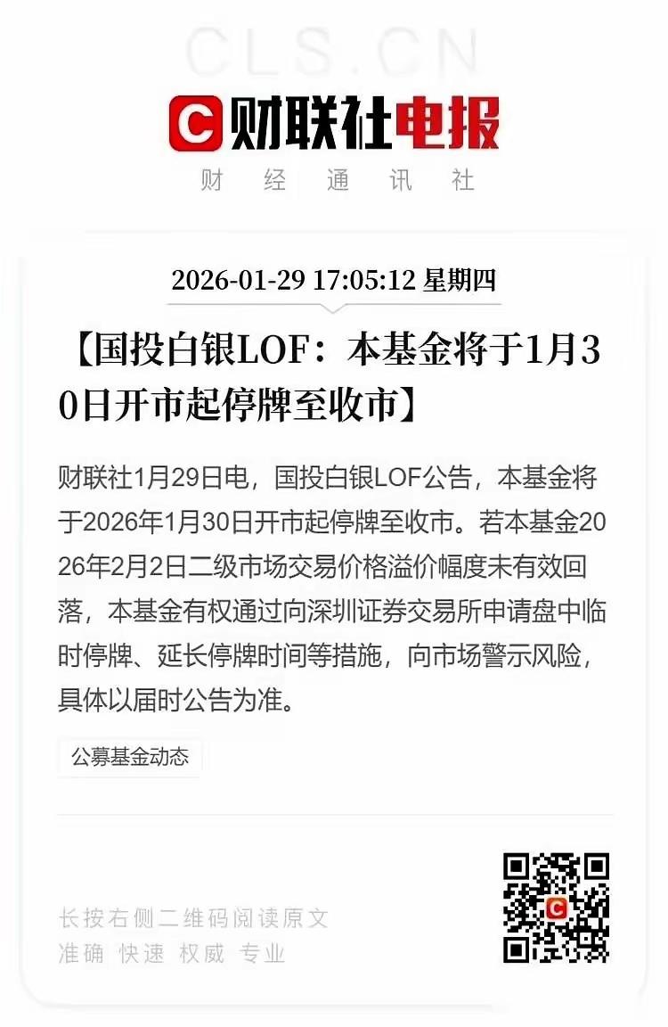 国投白银基金明天继续停牌,10点半左右依然是停牌,本周黄金白银大幅下跌,估计很多人在高位买入的损失巨大呀!这样的大幅下跌,短期内是不可能反弹向上!很多人只能在高密一套牢! 在期货市场,估计有人要开始爆仓了! 是国内还是国外?包括美国交易所都是大幅提高了保证金比例!那有些人肯定会被强制平仓损失,就会变得很大! 明天估计只要开盘交易,黄金白银依然是大幅下跌!很多投资者估计会造成很大的损失