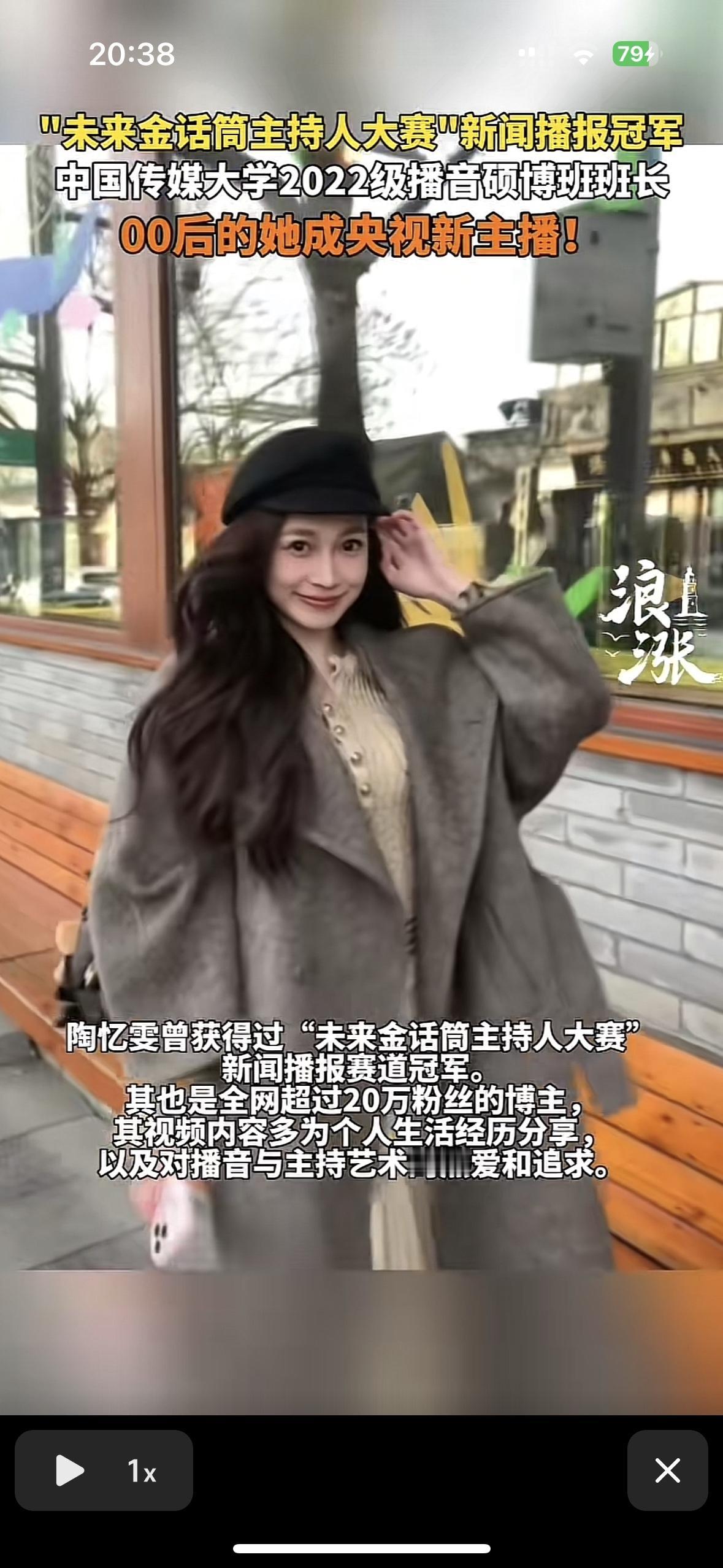 不得了了,杨颖跑去当主持人了嘛,这是董卿的接班人来了吗? 最近央视中文国际频道迎来了一位00后新主播陶忆雯,她不仅是中国传媒大学的高材生,还盯着“未来金话筒”新闻播报冠军的光环,更让网友们炸开锅的是,她长得太像杨颖了,精致的五官,甜美的笑容,和杨颖如出一辙 这位00后的新晋主播,是2018级播音硕博班的班长,还有人甚至觉得她就是下一个董卿,央视的接班人,难道央视是按娱乐圈的标准选主持人吗?大家觉得她会是下一个董卿吗?