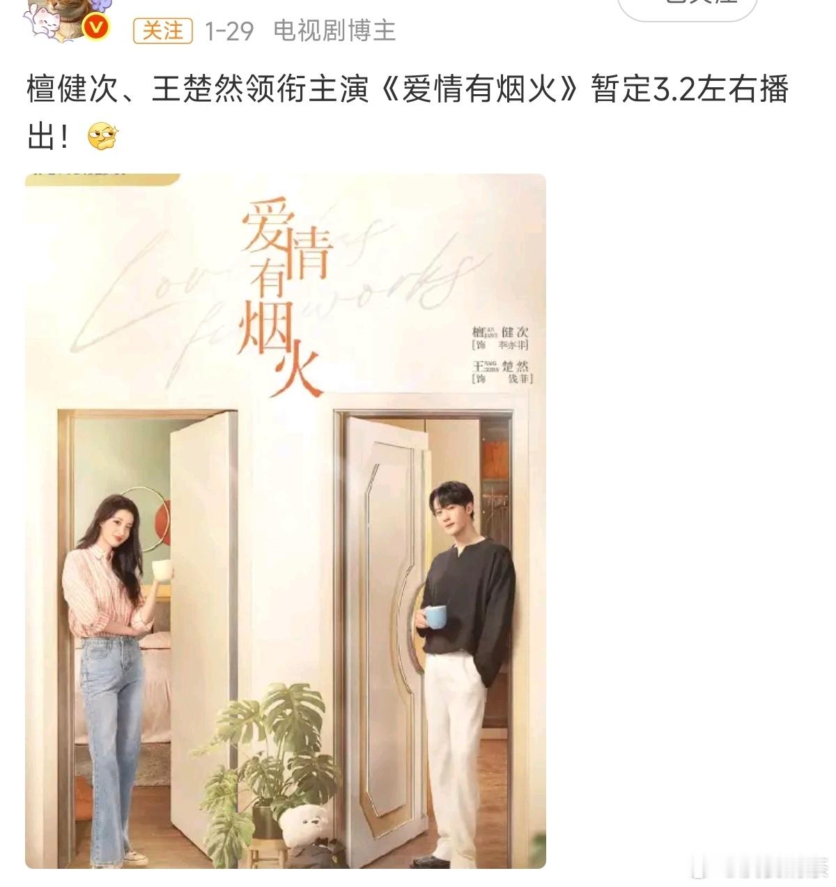 🥝《成何体统》传2月6日🐧《爱情有烟火》传3月2日👖《烽影燃梅香》顺利的话,3月
