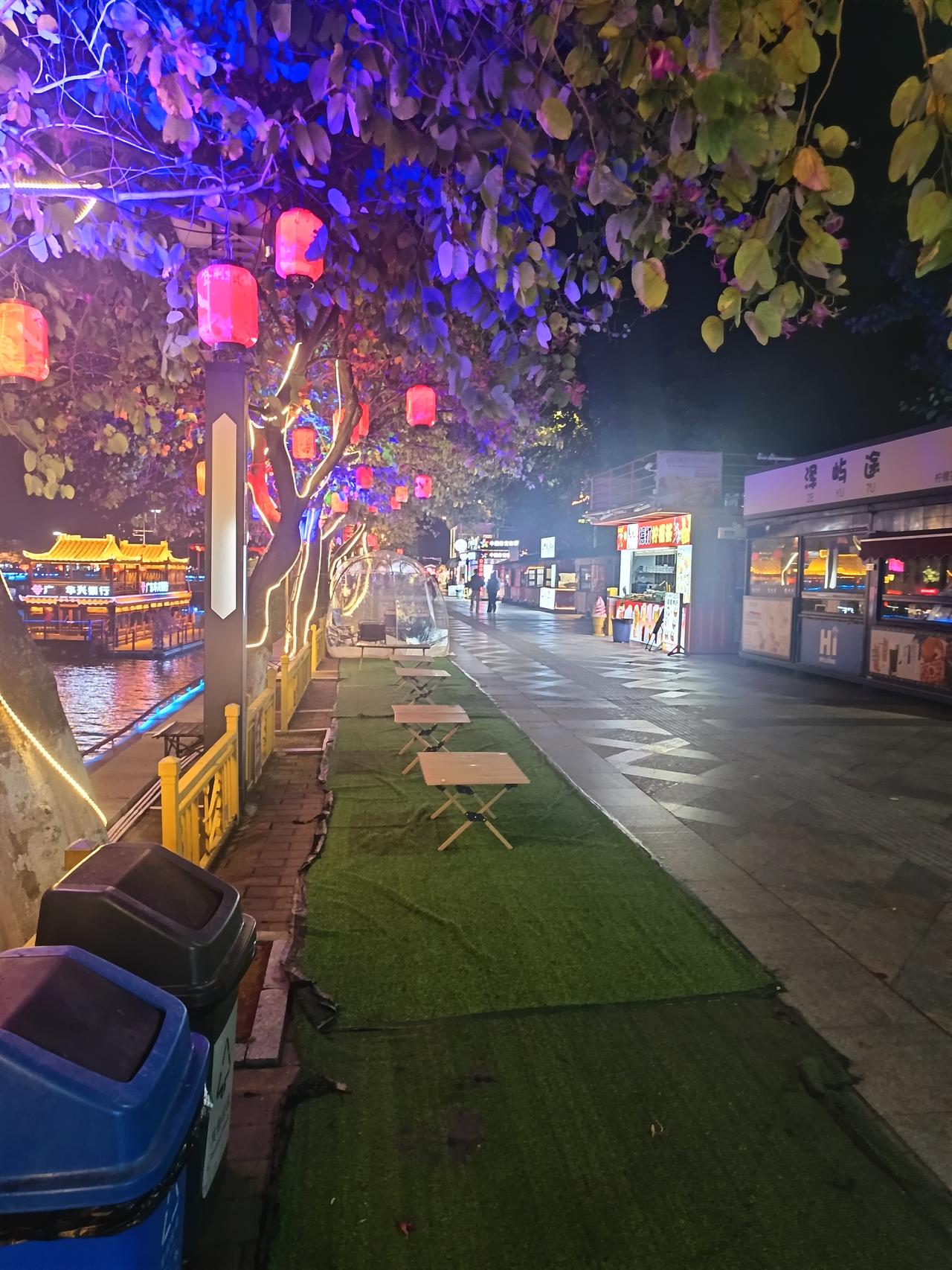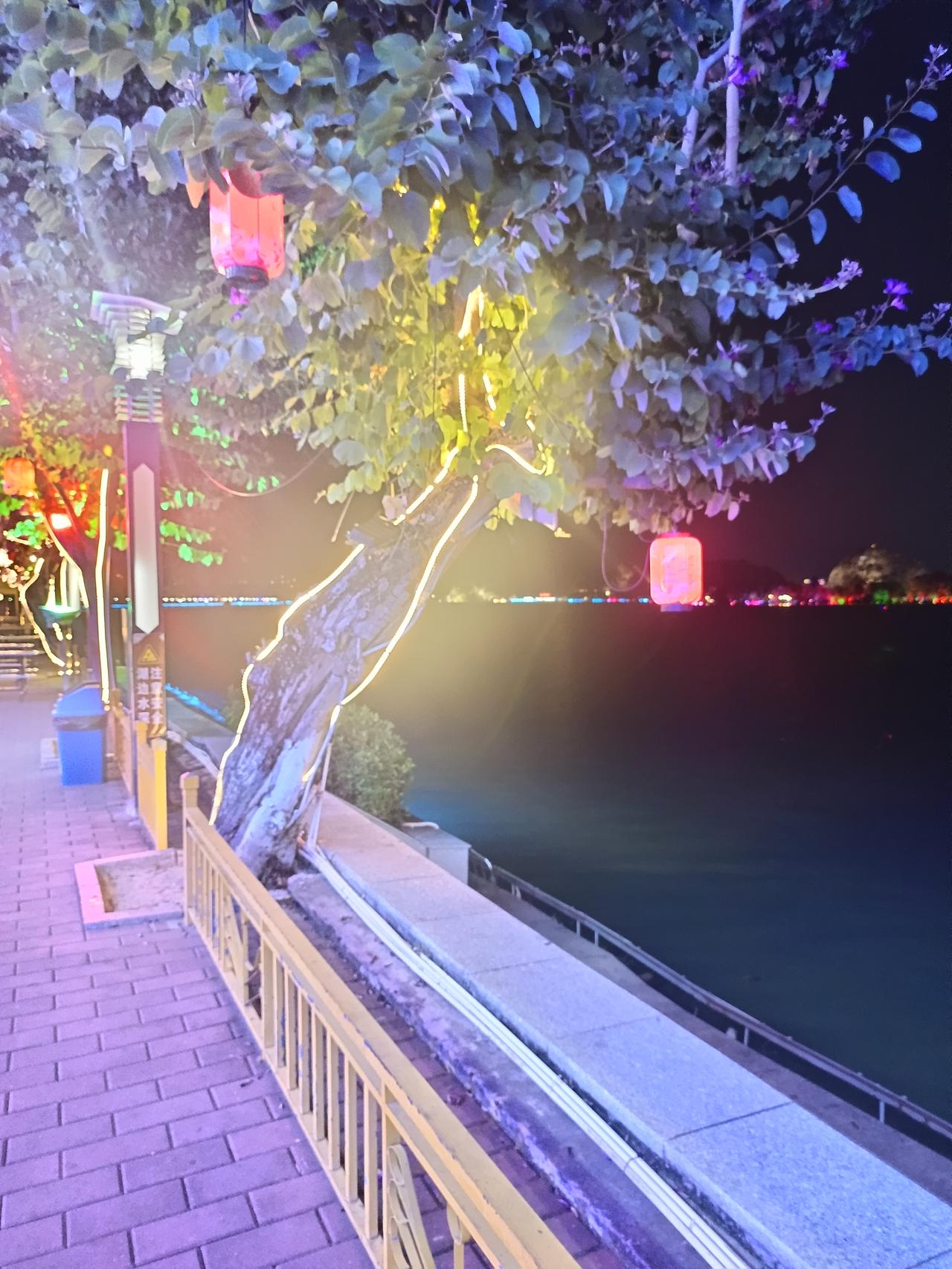 有一件事 我不知道怎么说才好 我发现了一个很严重的问题? 家人们谁懂啊?今晚路过紫荆西堤 今天是星期日啊,走一下紫荆西堤可能会比较热闹吧 可是人不怎么多,三三两两 在前排的店是开着的,越走到最后也没有店开门 甚至有些店是关门的,时间是7点多,不应该呀! 不是说经济非常好吗?大家不出来逛街吗? 不过今晚的月色确实不错,今天应该是15了 走在星湖边,这种满月,非常的有味道 衬托的紫荆花开,更加是花好月圆的季节了 可是最美中不足的是紫荆西提这几个字旁边,那么美,那么近,周末来肇庆,这几个字为什么不亮呢? 一明一暗,是不是有艺术成分在里面,这个真不清楚了。只能说我看不懂,因为在远地方看,这几个字基本上是看不到的!