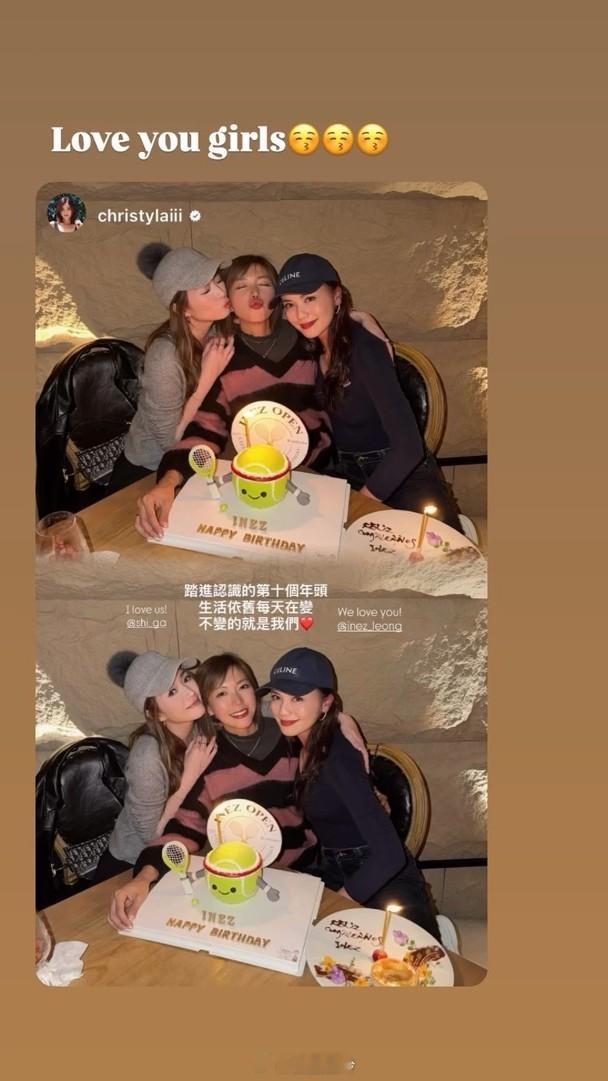 洪永城太太梁諾妍日前在社交網分享影片,透露上月為老公安排了一個慶生之旅,在富國島享受甜蜜的二人世界。2月2日生日的她暫時未知老公會否安排驚喜作回禮,但就獲兩位閨蜜提早慶生,甜在心頭!連詩雅與黎紀君約了壽星女去一間私房菜餐廳歎西班牙菜,各款菜色賣相精緻,當中更有一道「火燄雞」,讓她們大感新奇!梁諾妍獲好姊妹送上祝福,同時加送肉嘴,連詩雅寫道:「踏進認識的第10個年頭,生活依舊每天在變,不變的就是我們。」黎紀君亦大晒姊妹情:「預祝生日快樂,繼續你的幸福人生,重要的是,任何事我們都在。」