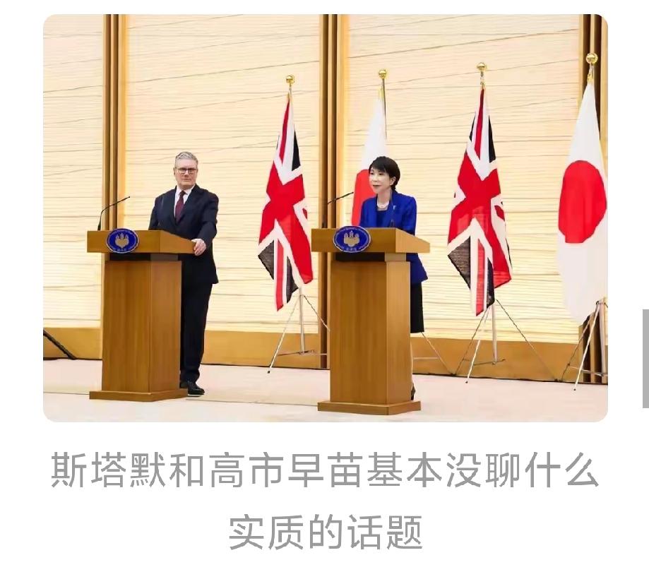BBC这报道挺有意思,斯塔默访日露个脸就走,看来英国心里对中日份量门儿清。高市早苗上台后不断在台海挑衅,破坏了中日关系。日本还在晚宴准备跟斯塔默谈三件“抗华大事”,又是经济安全保障,又是防务合作,全是围着围堵中国转。 可斯塔默一天就闪人了,估计是觉得和日本合作没啥搞头。日本如今自身难保,中国加强了稀土等材料出口管制,日本很多关键产业对这些材料依赖度极高,比如重稀土对华依赖度接近百分百。英国在这种局势下不傻,不会轻易被日本拉着趟这浑水。