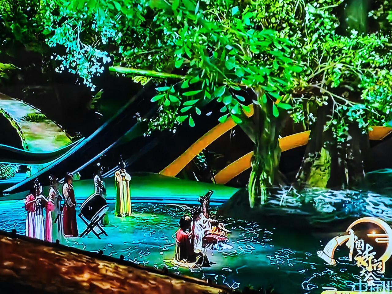 这一个环节是几位身穿古装的美女用各种古乐器演奏《清平乐》,画面唯美,音乐动听,令人心旷神怡。 选手们腹有诗书气自华,导师们也非常有学问,主持人龙洋灵动美丽气质好,这个节目值得一看。