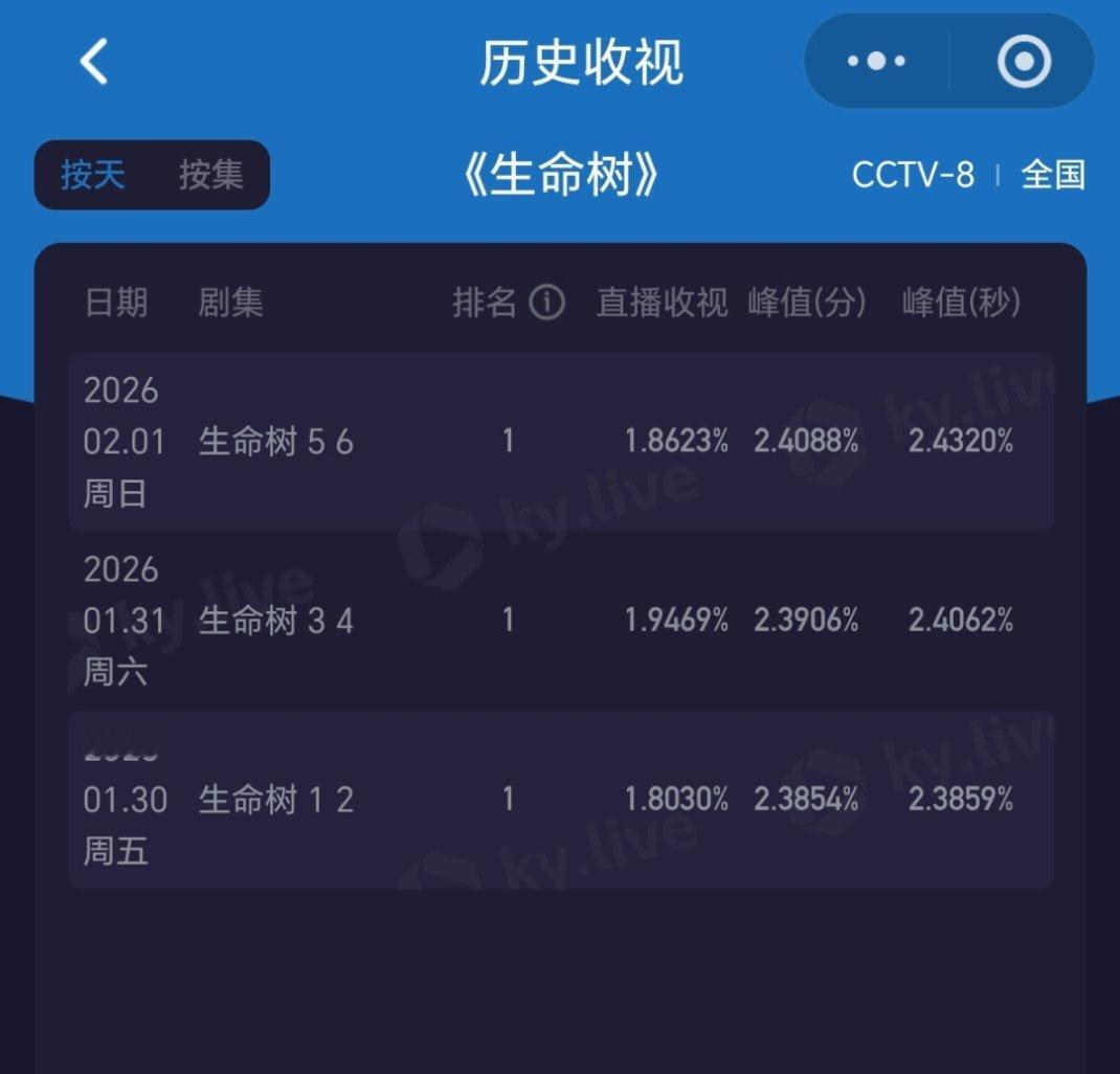 生命树抬走吧收视三天没起色,第二集在2横盘那么久热度今天不过8500,集均1500都得磨