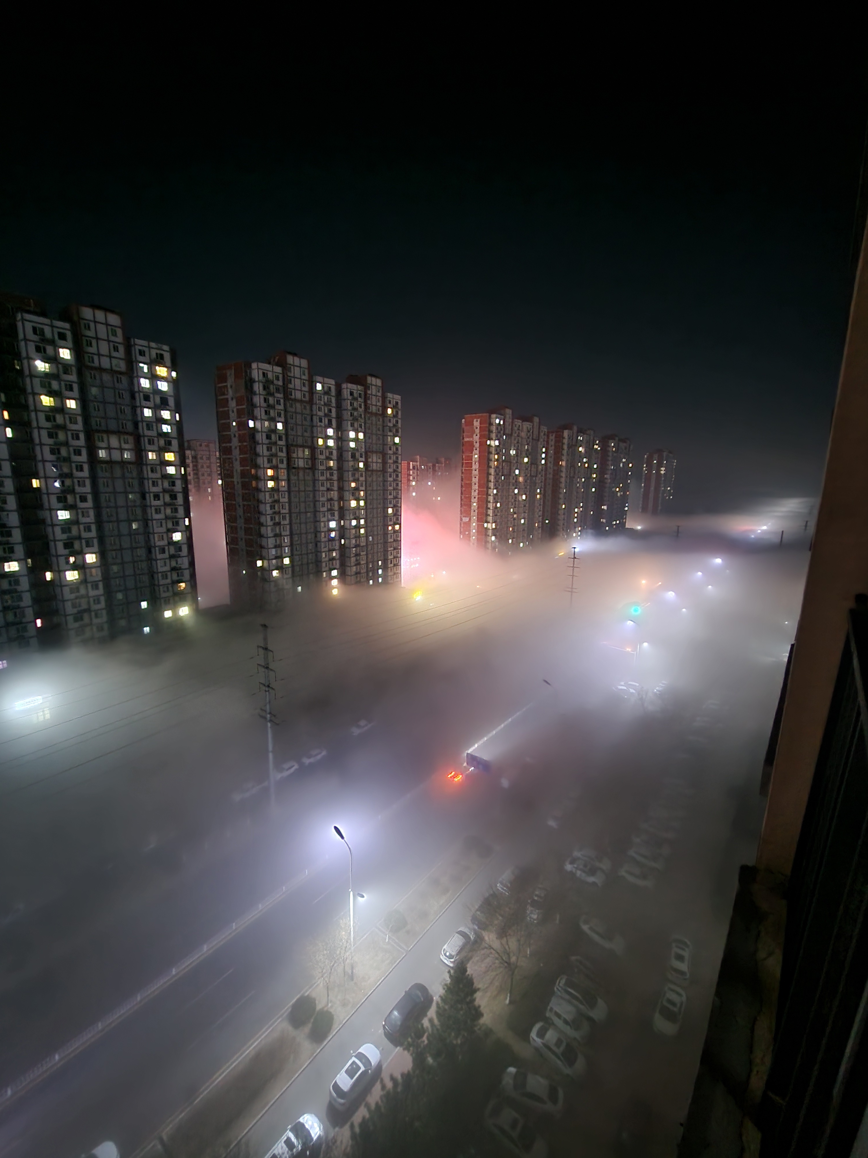 外边下雾了,跟闹妖精一样。 唐山
