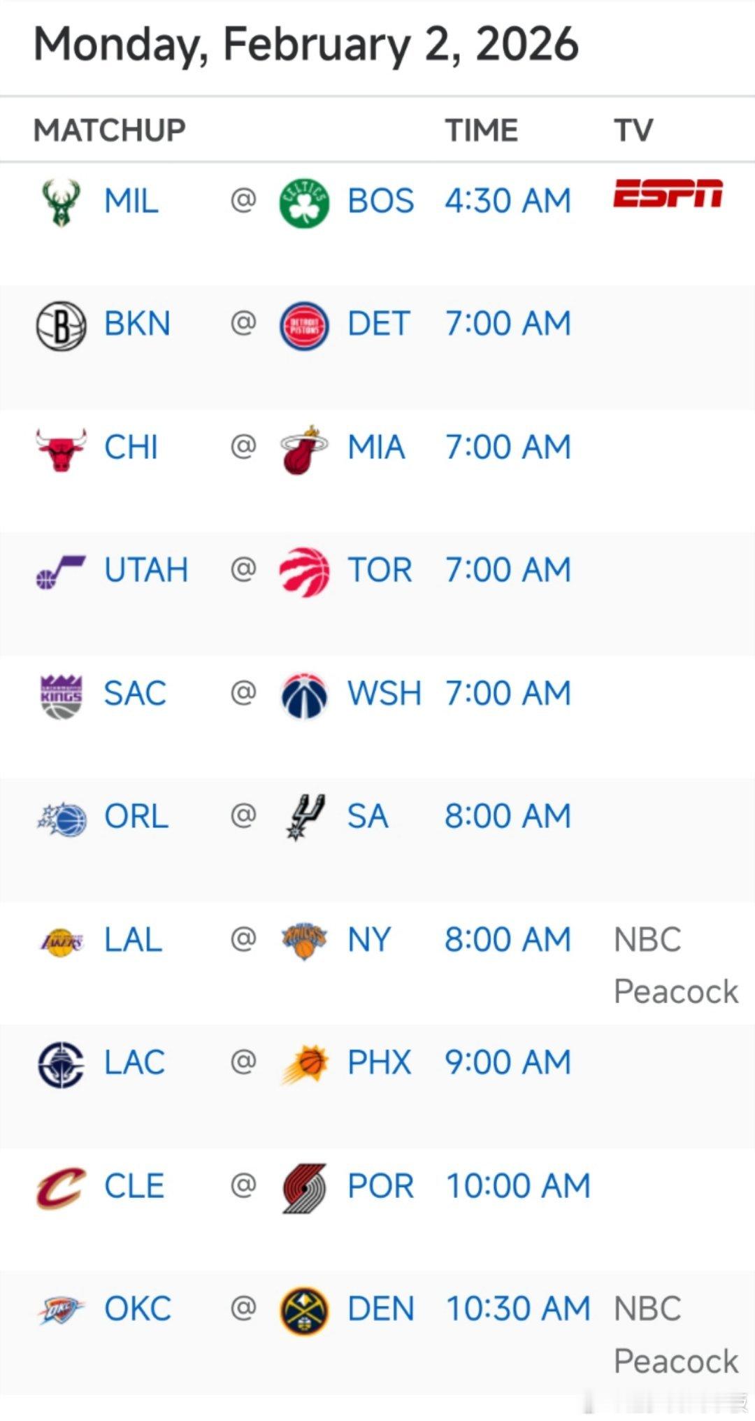 8:00 魔术vs马刺,湖人vs尼克斯9:00 快船vs太阳10:30 雷霆vs掘金新赛季篮不住