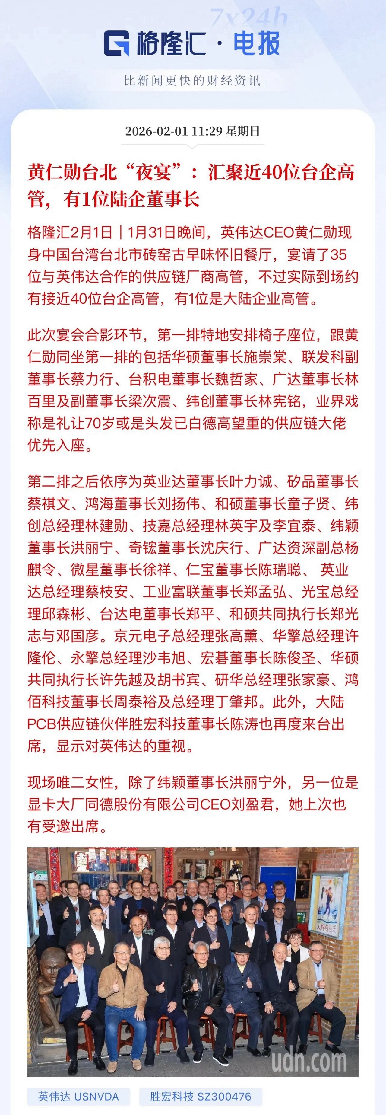 黄仁勋台北行与台企40位高管合影暴露隐忧!台企为主的供应链无疑是英伟达产品从概念设计到实物落地的最大底气,在白宫科技供应链去中国企业化的进程中,我们如何打出反击牌?比如H200不是急于通关吗,白宫增收附加税,我们也可以提出芯片“含A量”的要求!这一招欧洲就反复对苹果用过屡试不爽,欧洲通过这一招,反复折腾苹果比如充电器、市场垄断,苹果也只能乖乖低头!市场主动权在我,我们就要打出反击牌。…