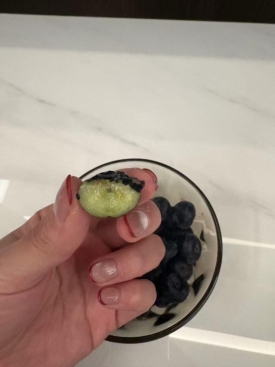 对了,蓝莓的蓝原来是结构色。它果皮本体是深紫黑,通过表面那层白果粉通过光学散射,才让我们看到漂亮的蓝色。白果粉是蓝莓自带的天然保鲜层,糖醇物质可食用,负责锁水防变质,果粉越完整,果子越新鲜,吃的时候别使劲搓掉~水冲一下即可吃吃吃!