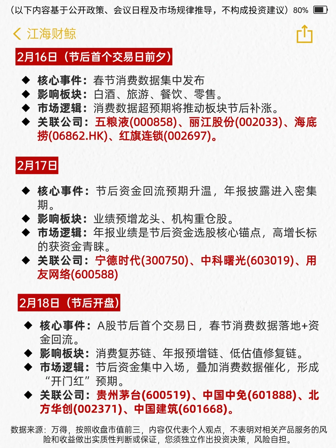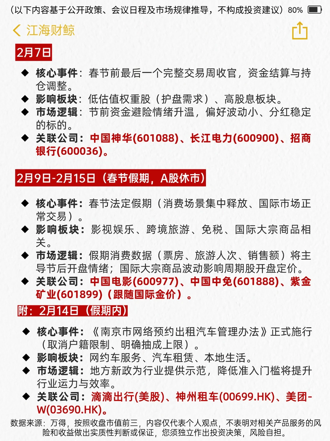 明天(2月9日)是A股春节前最后一个交易周的首日,结合近期市场热点与政策动向,以
