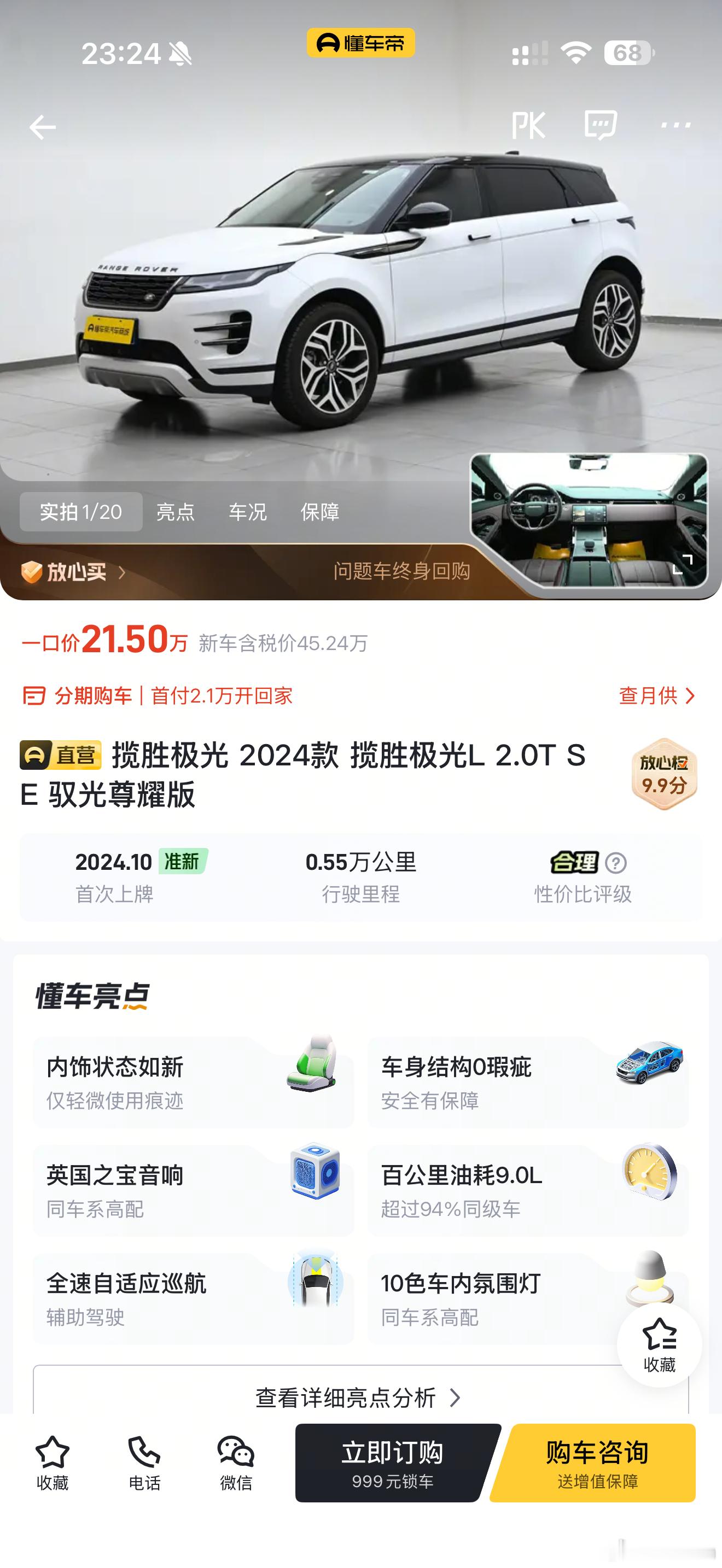 又到了推荐二手车的时候了揽胜极光L 2024款24年10月上牌只行驶了5500公里一口价21.5万划算吗?(◍•ᴗ•◍)有21万,你会考虑它还是其他的新车?