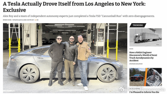 均速103km/h 特斯拉Model S用FSD跑4958公里全程零接管早在十年前,马斯克承诺特斯拉将在2017年底完成洛杉矶至纽约的自动驾驶演示,虽然延期了9年多,但这一诺言终究得到了兑现。海外车媒《The Drive》近日报道称,日前,一支团队驾驶2024款特斯拉Model S从洛杉矶直达纽约,完成了全球首次零干预 “FSD炮弹飞车挑战”。此次挑战由前《The Drive》撰稿人、现风投合伙人亚历克斯·罗伊带队,同行的还有自动驾驶领域专家沃伦·阿纳与爱好者保罗·范。测试车辆搭载HW4自动驾驶硬件与FSD v14.2.2.3软件,全程3081英里(约4958公里),耗时58小时22分钟,平均时速64英里(约103公里),充电累计耗时10小时11分钟。途中虽因人为失误和冬季天气多次绕路,且遭遇美国中西部暴风雪,但车辆全程零人工干预,就连充电站进出、泊车均自主完成。为坚守零干预原则,团队曾绕行90分钟折返接落单成员,未中断自动驾驶系统,整趟旅程仅因罗伊误触方向盘出现一次系统断开,全程双机位录像留存证据。报道指出,此前虽有特斯拉车主完成跨洲自动驾驶,但路线并非马斯克承诺的洛杉矶至纽约。而且此次挑战特意选择冬季东北部复杂路况,印证了自动驾驶系统并非仅能在理想条件下运行,即便是暴风雪中,车辆的雪地行驶与应急恢复能力表现突出。“The Drive”强调,这次挑战是特斯拉自动驾驶技术成熟的重要标志,也兑现了马斯克搁置九年的承诺,随着软件持续优化,这样的零干预跨洲挑战未来或将成为常态。