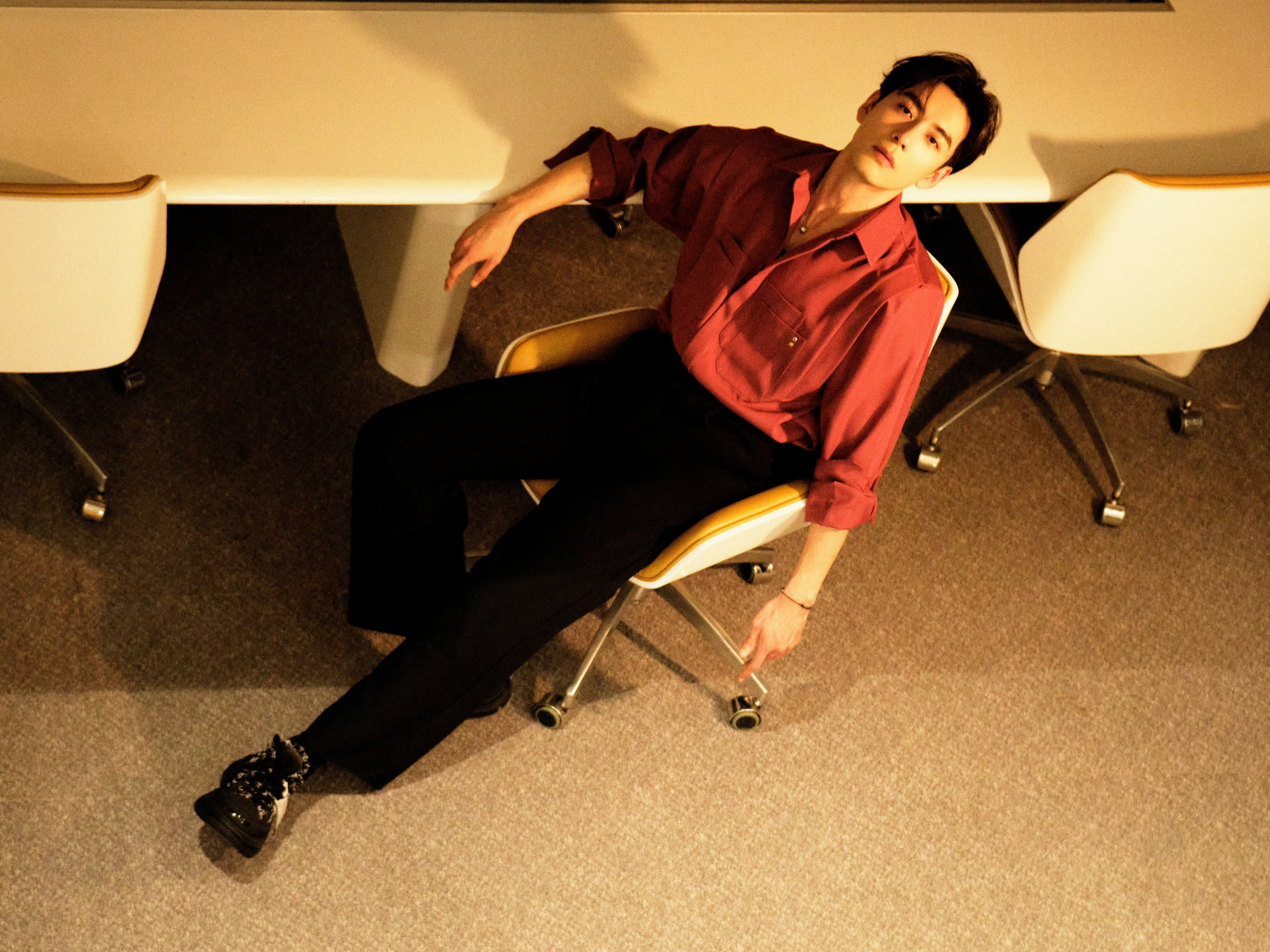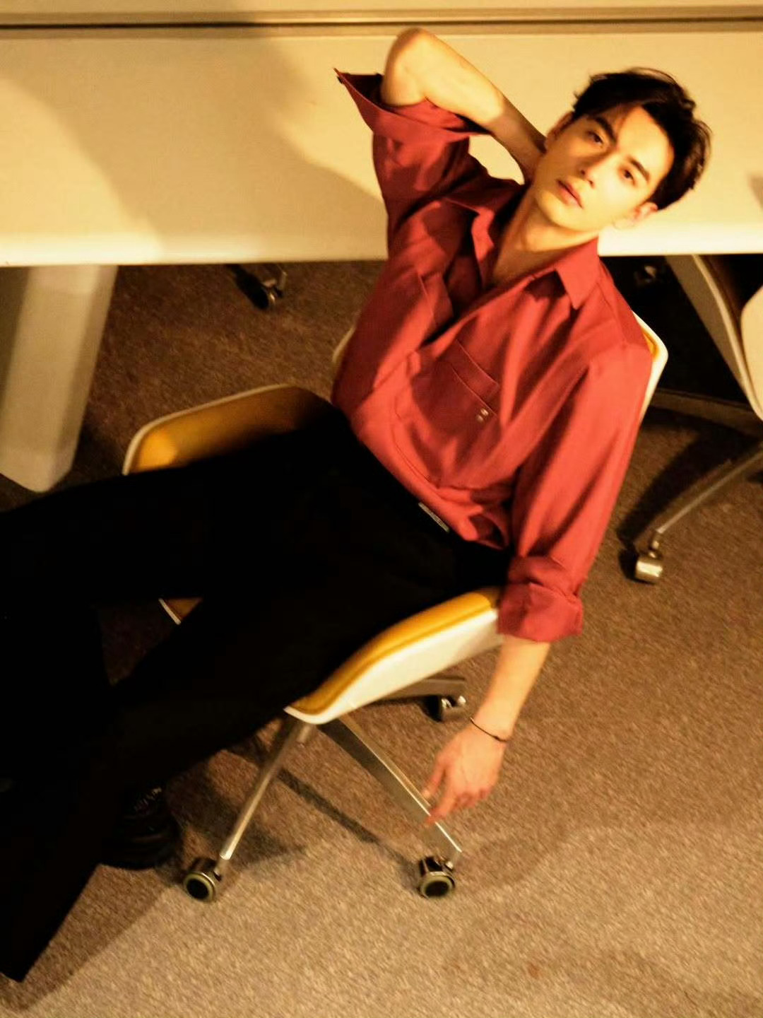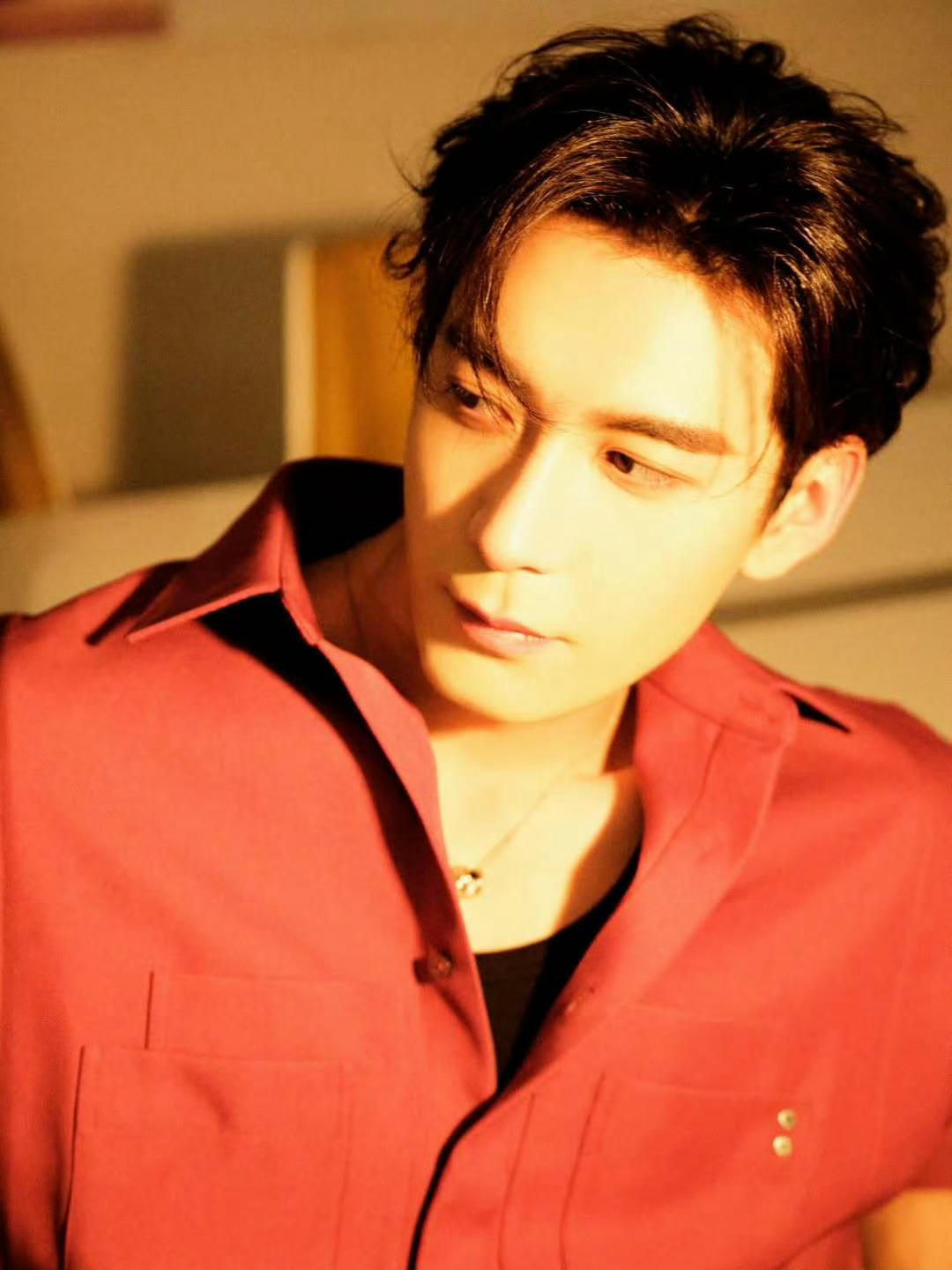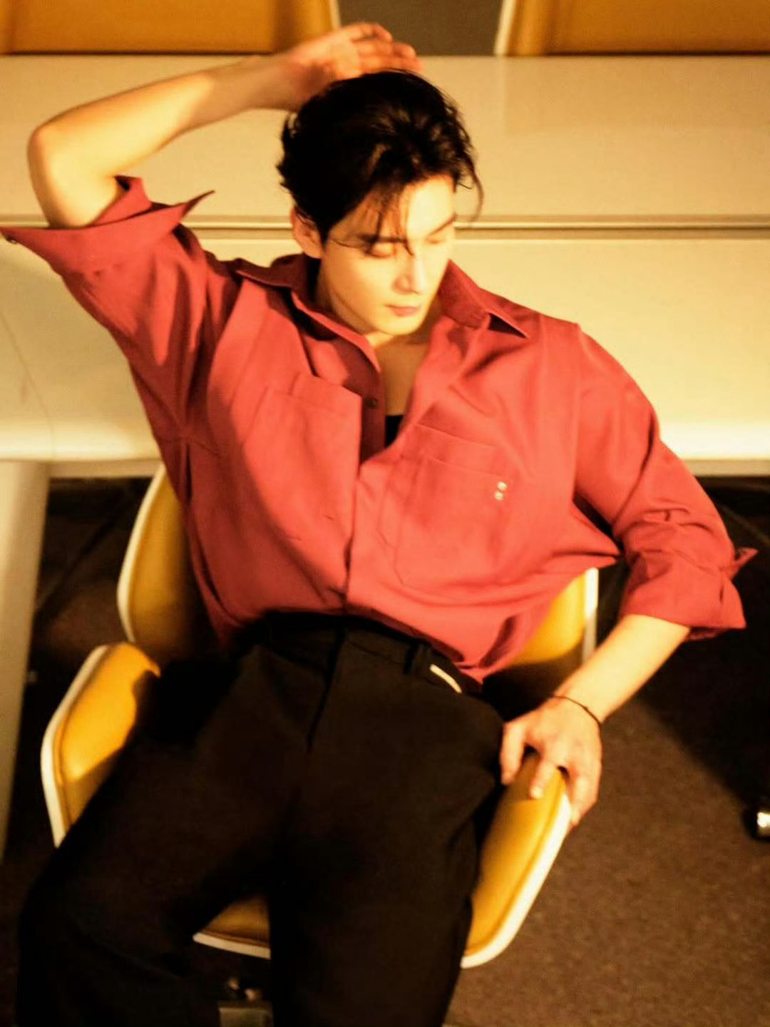 2026营业照衍生文(三) 《致命特调·邪念》暖黄胶片色的灯光漫过酒吧的木质长桌,将沈酌的身影揉进角落的阴影里。酒红色衬衫松垮地敞着两颗纽扣,银坠在颈间若隐若现,他手肘支着桌面,修长手指漫不经心叩着空杯壁,慵懒的姿态里藏着几分漫不经心的锐利,像被岁月酿透的烈酒,初品温和,细品却藏着慑人魂魄的锋芒。