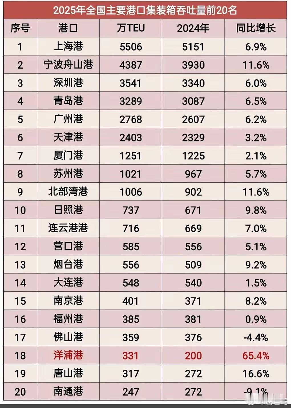 加油北部湾!这是2025年全国主要港口集装箱吞吐量的前20名,北部湾港进入前十,居第九名。如果今年平陆运河通航后,明年2027年北部湾港应该超过苏州港进入第八名。预计十五五计划结束时,即2031年,广西北部湾港应该进入第七名,广西交通厅也规划到2030年集装箱吞吐能力1600万,超过厦门港指日可待!加油,广西!